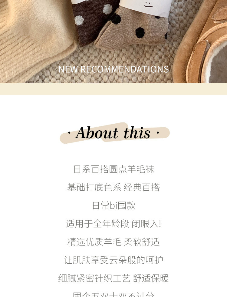 Maillard 울 양말 캐시미어 중반 송아지 가을과 겨울 두꺼운 따뜻한 양말 여성의 일본 올 매치 폴카 도트 주지 도매