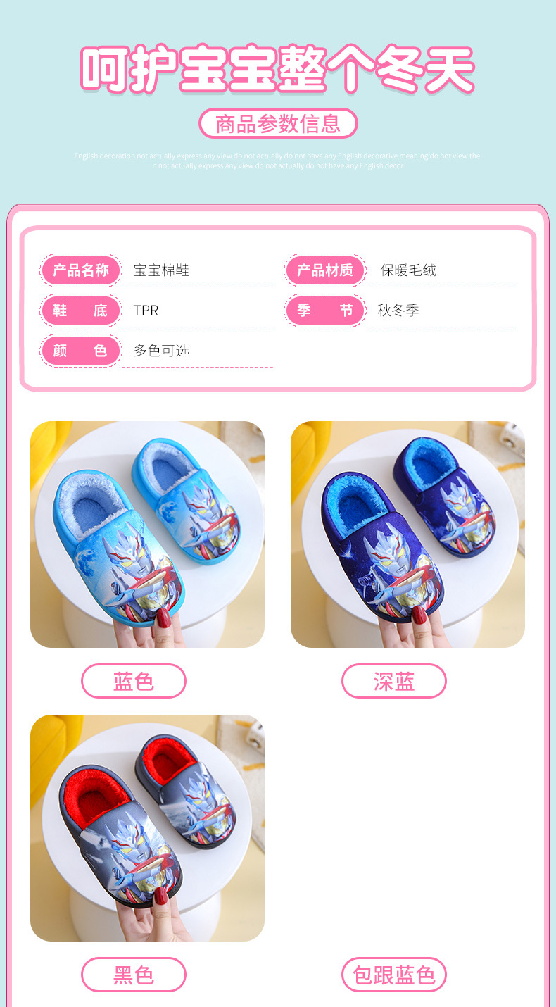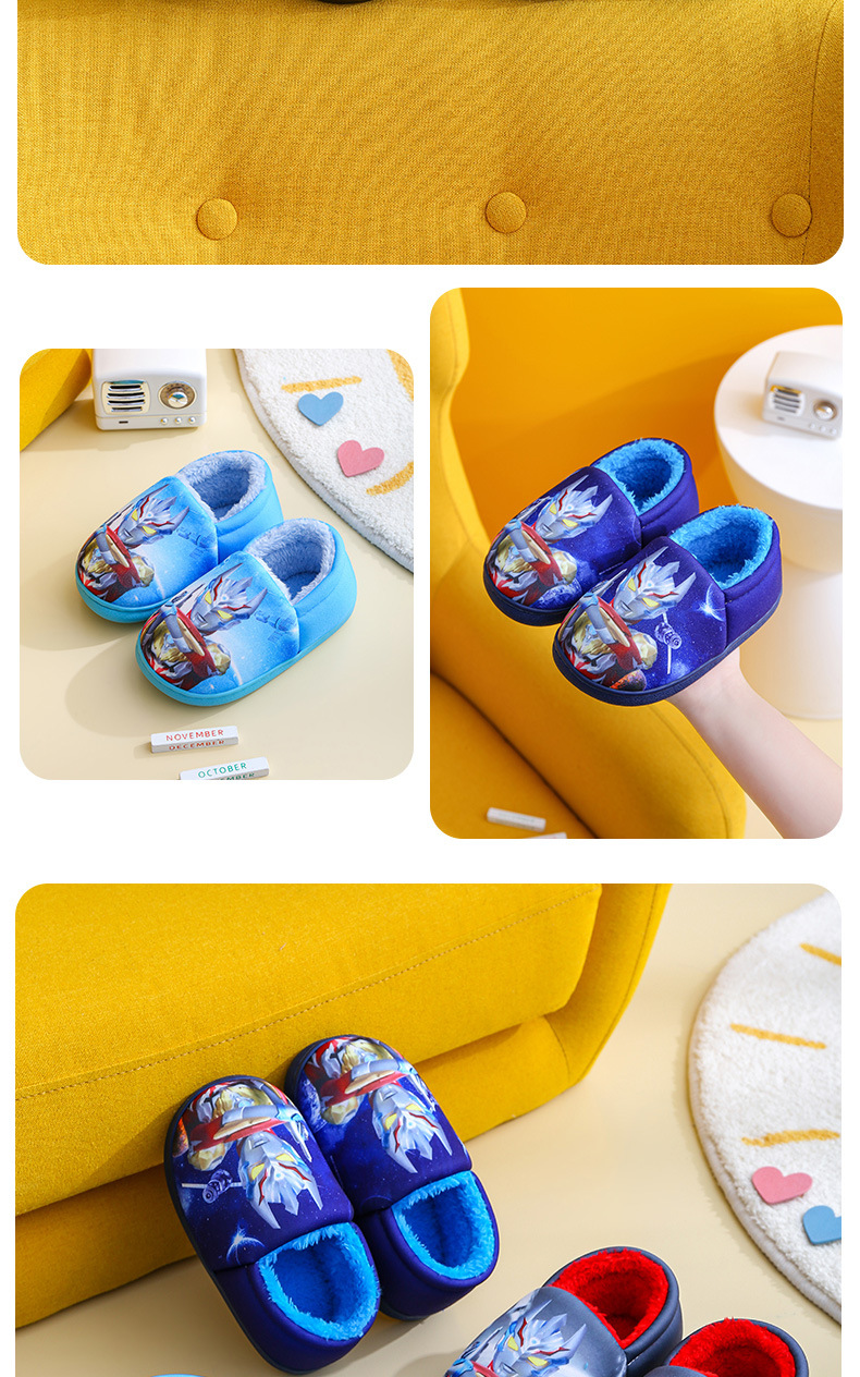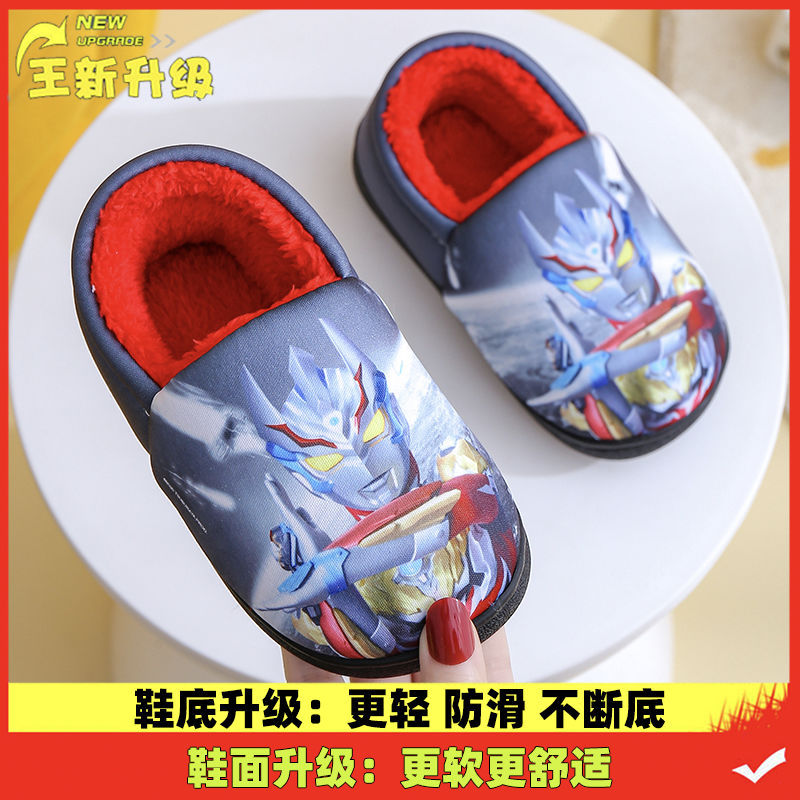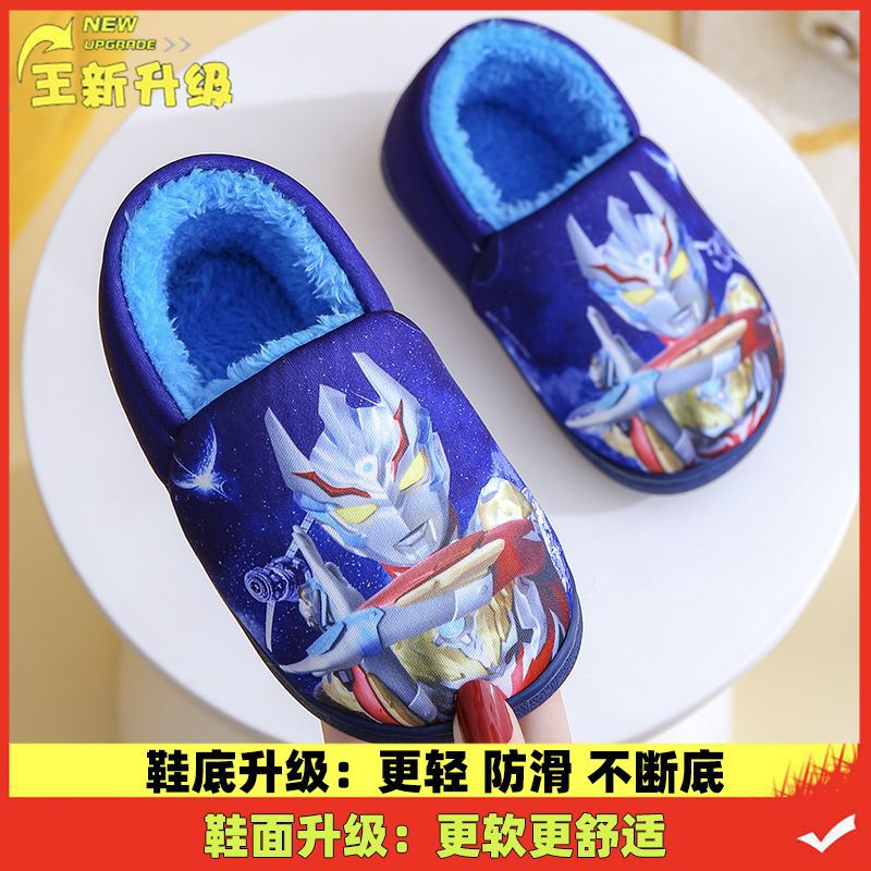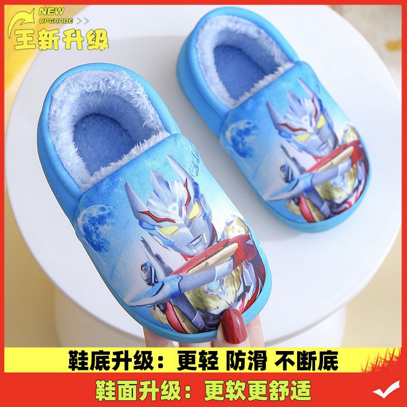 새로운 Ultraman 어린이 면화 슬리퍼 소년 집 실내 미끄럼 방지 소년의 따뜻한 봉제 만화 아기 면화 슬리퍼스토어 가기