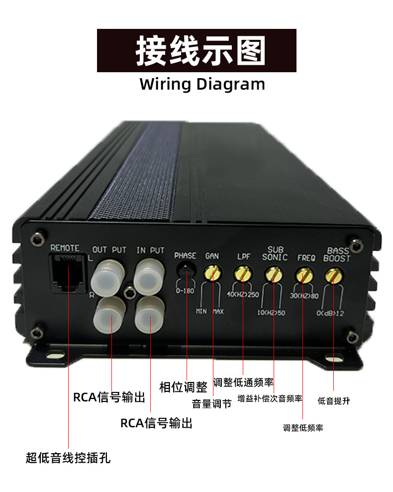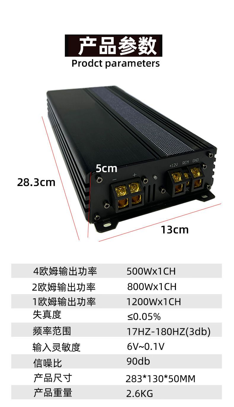 공장 도매 자동차 오디오 수정 12V 고출력 클래스 D 단일 채널 1200W 디지털 자동차 증폭기