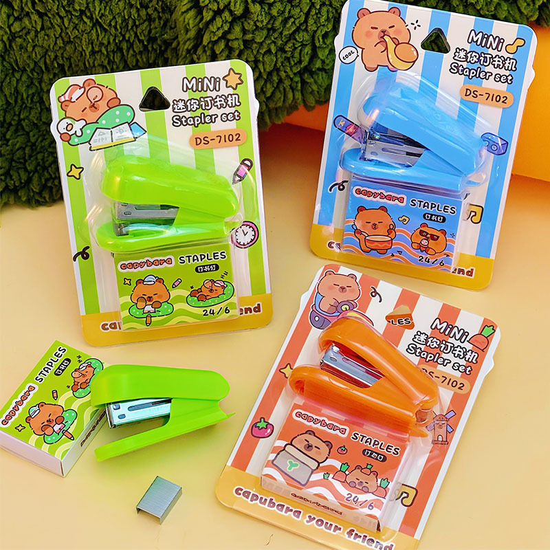 미니 스테이플러 세트 작은 휴대용 스테이플러, 스테이플 학생 만화 바인딩 기계 귀여운 문구 보내기