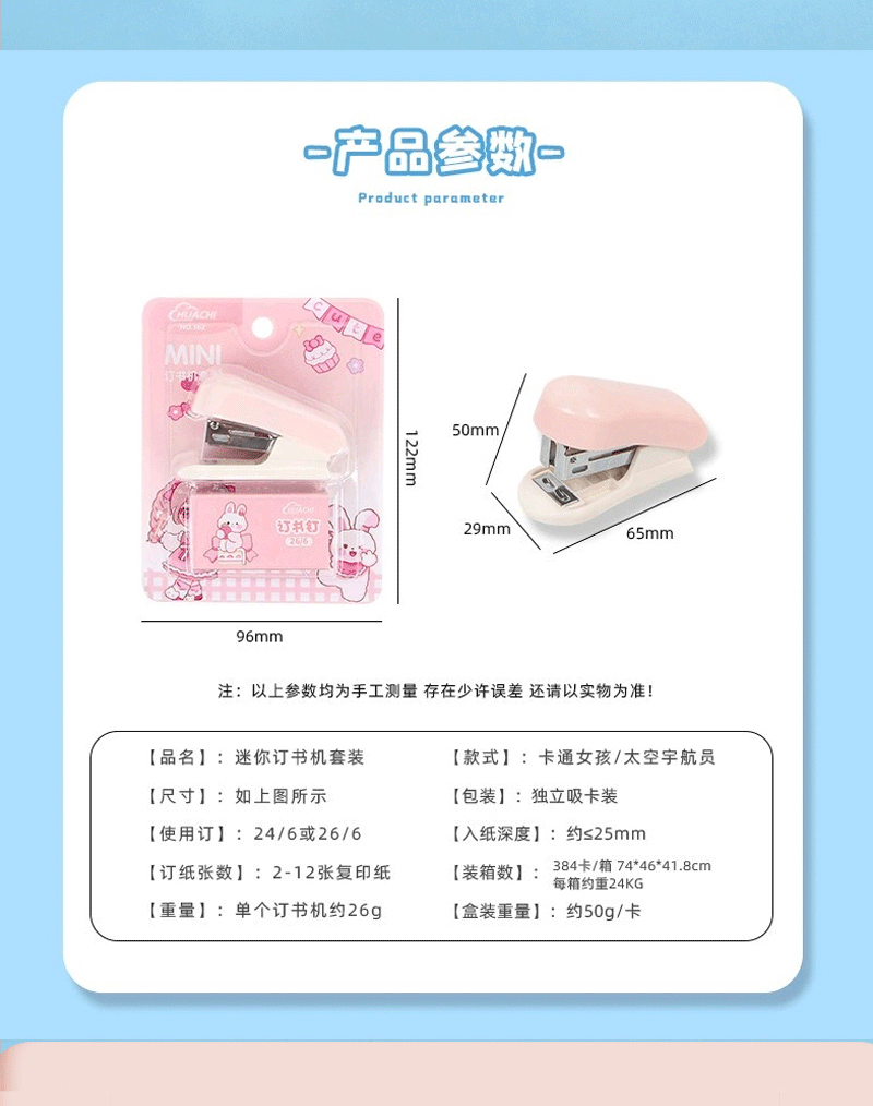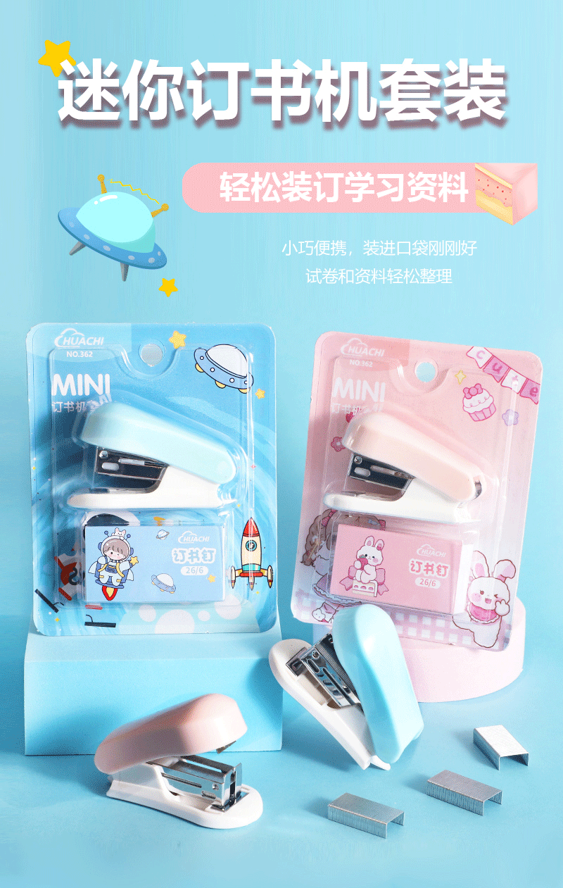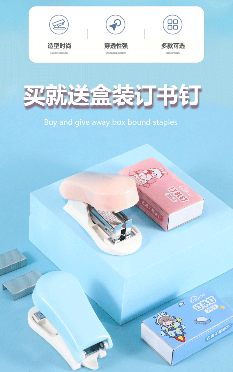 미니 스테이플러 세트 작은 휴대용 스테이플러, 스테이플 학생 만화 바인딩 기계 귀여운 문구 보내기스토어 가기