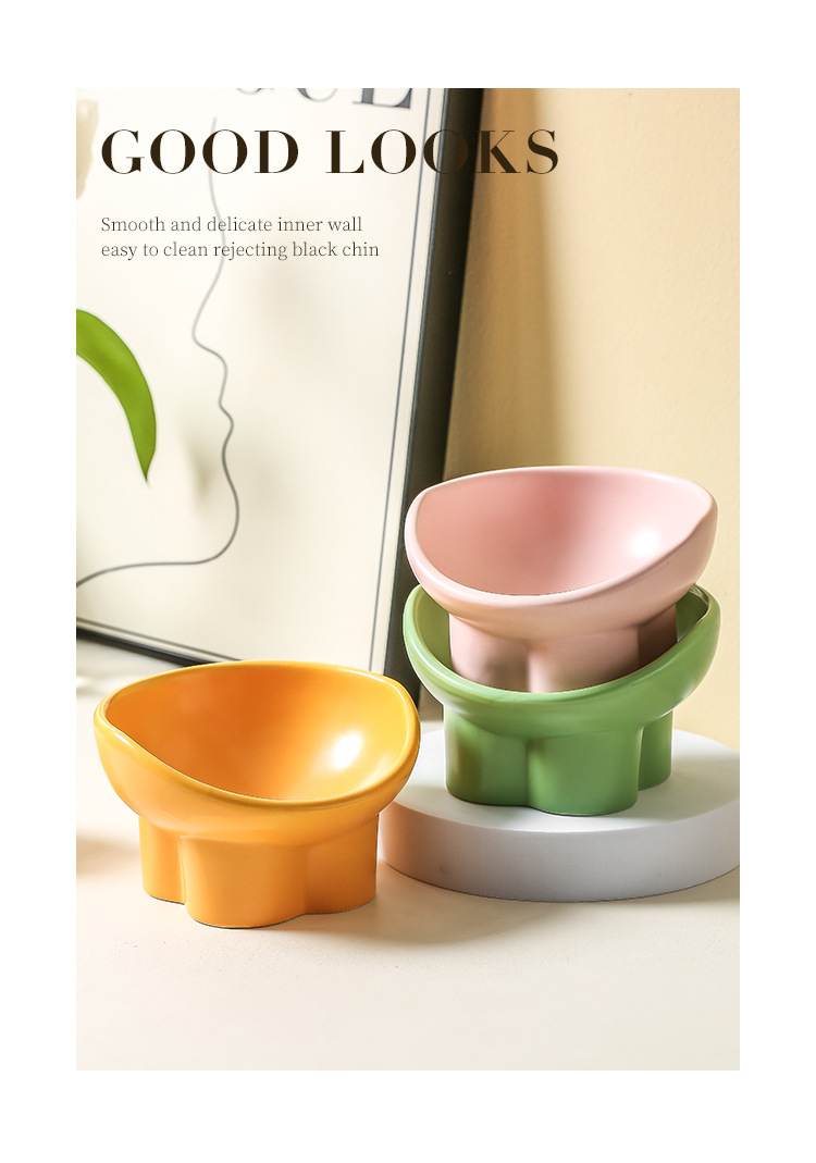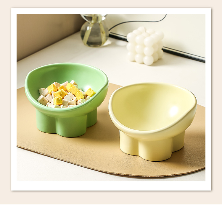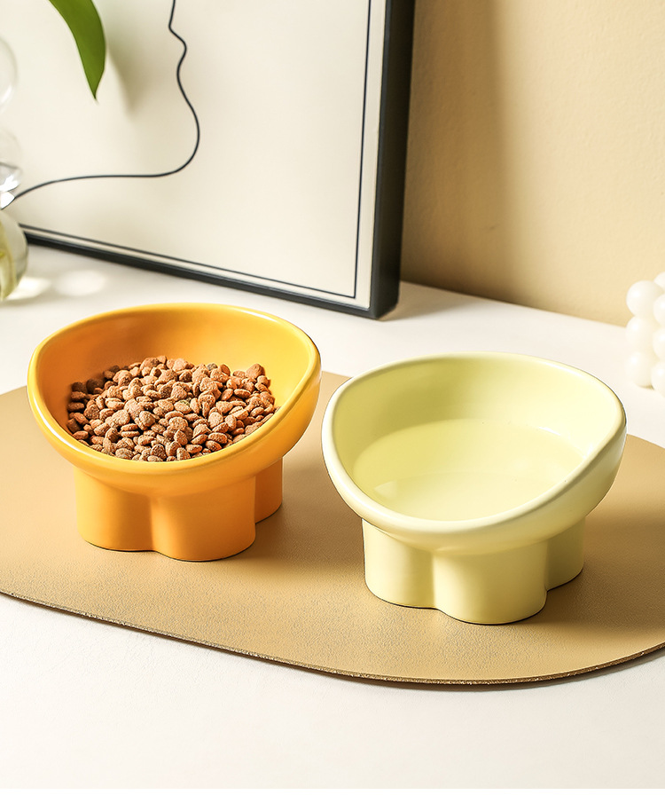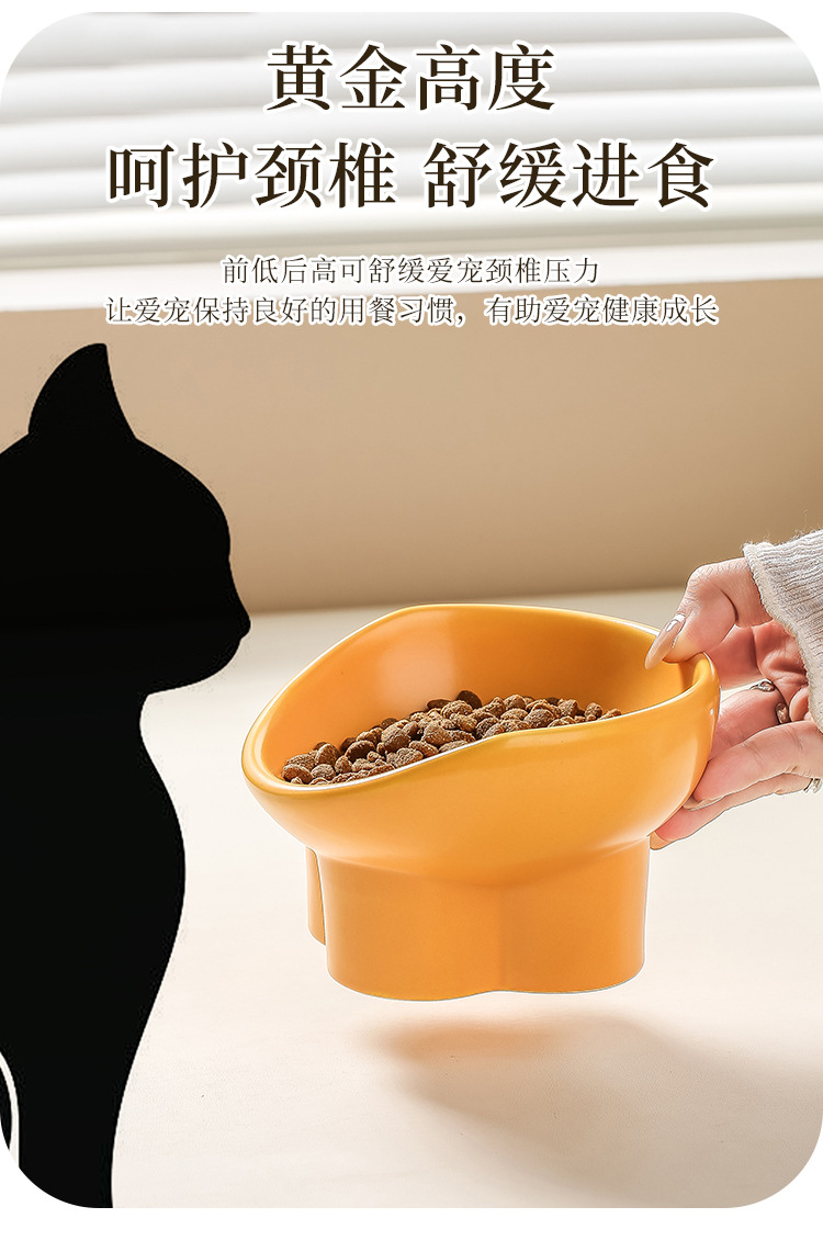고양이 그릇 세라믹 더블 그릇 물 그릇 보호 자궁 경부 척추 높은 발 비스듬한 입 고양이 음식 그릇 마시는 그릇 애완 동물 그릇 애완 동물 그릇