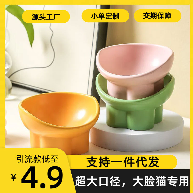 고양이 그릇 세라믹 더블 그릇 물 그릇 보호 자궁 경부 척추 높은 발 비스듬한 입 고양이 음식 그릇 마시는 그릇 애완 동물 그릇 애완 동물 그릇스토어 가기