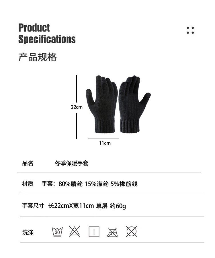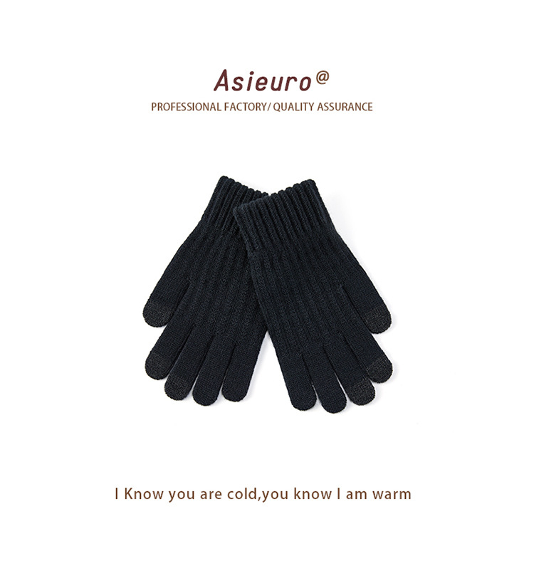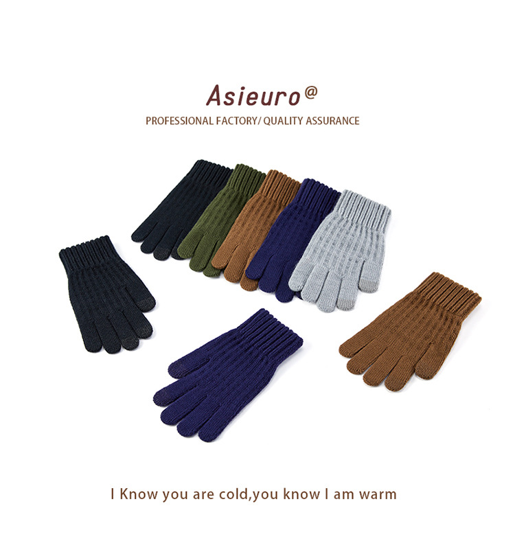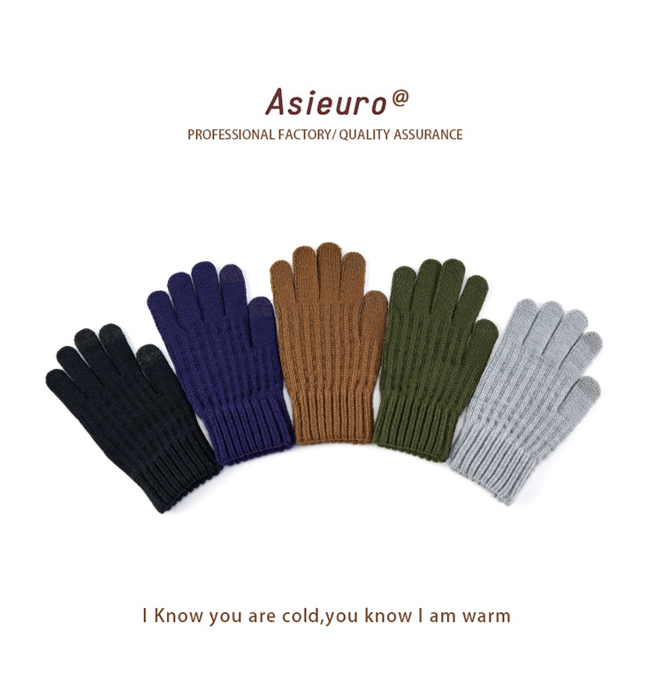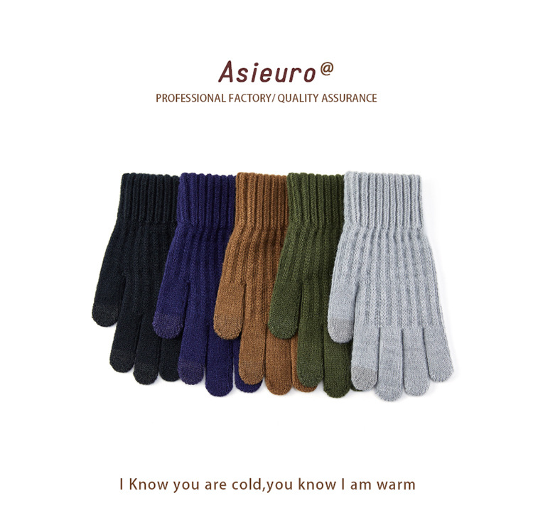 가을과 겨울 따뜻한 남성 니트 방풍 터치 스크린 도매 장갑 단색 다용도 커플 니트 장갑