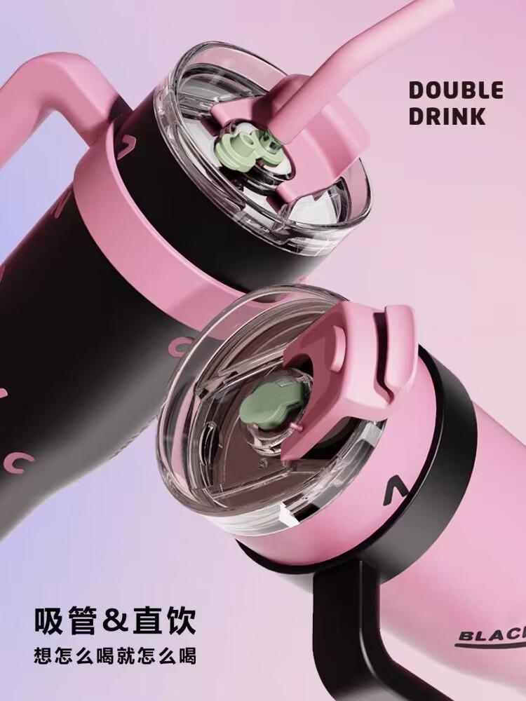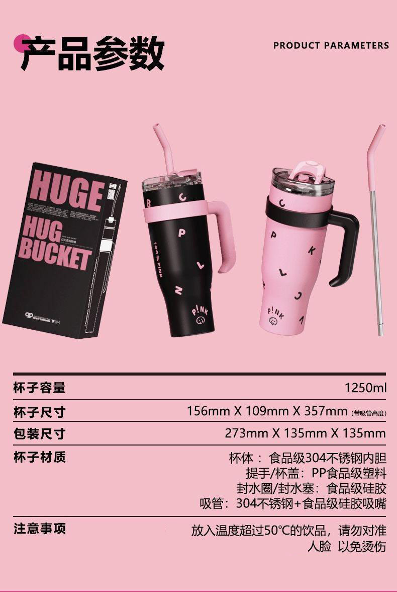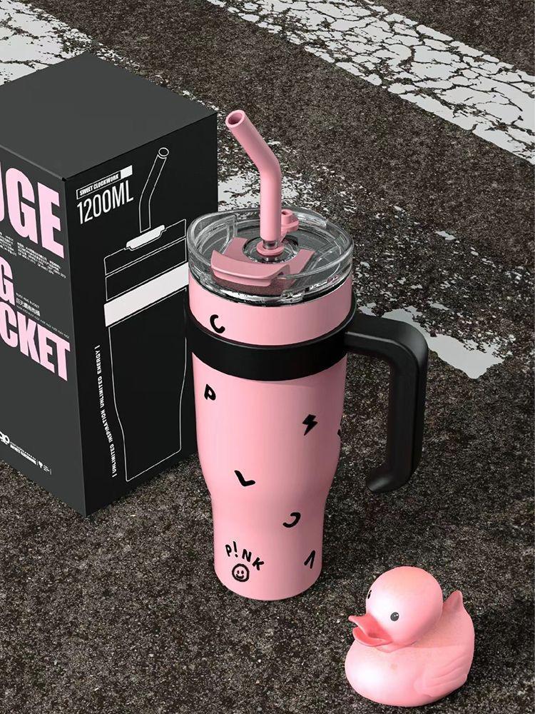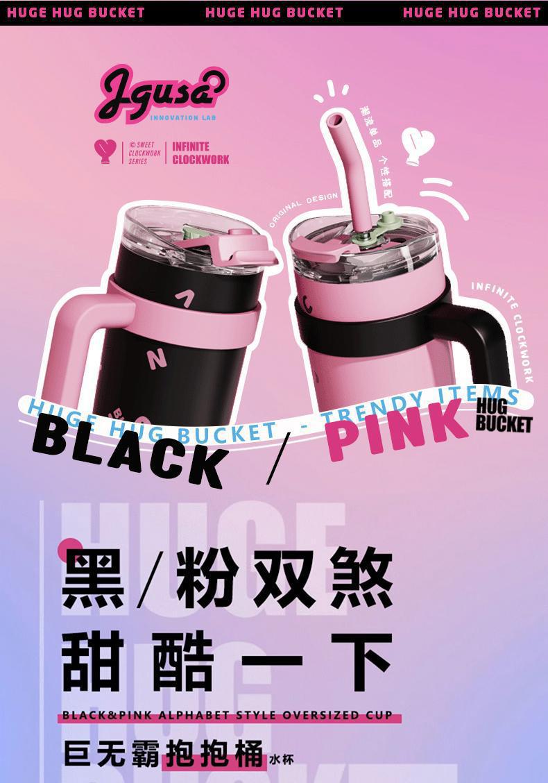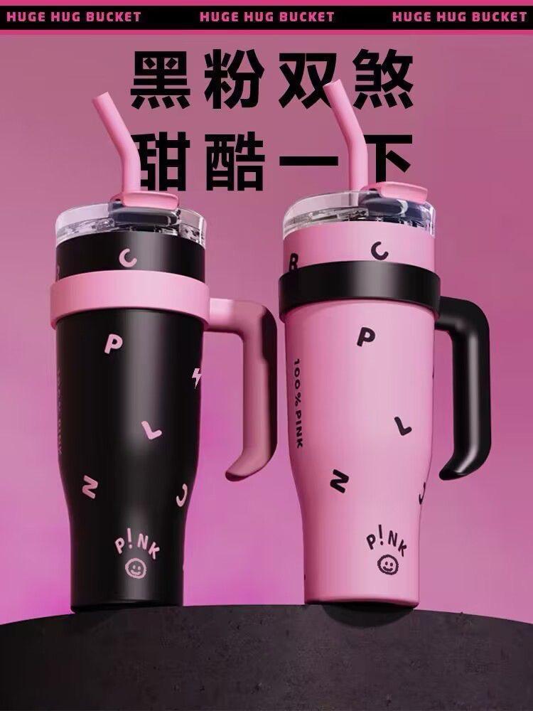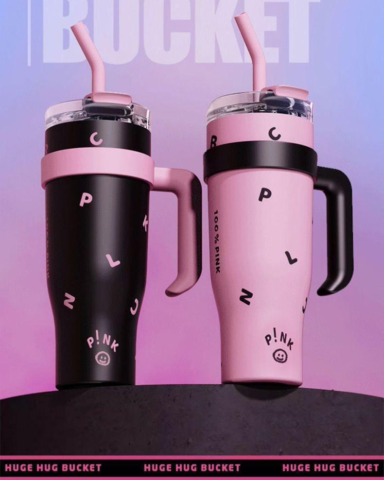 블랙 핑크 빅 맥 컵 40oz 아이스크림 컵 포옹 컵 대용량 스테인레스 스틸 진공 컵 핸들 물 컵 304스토어 가기