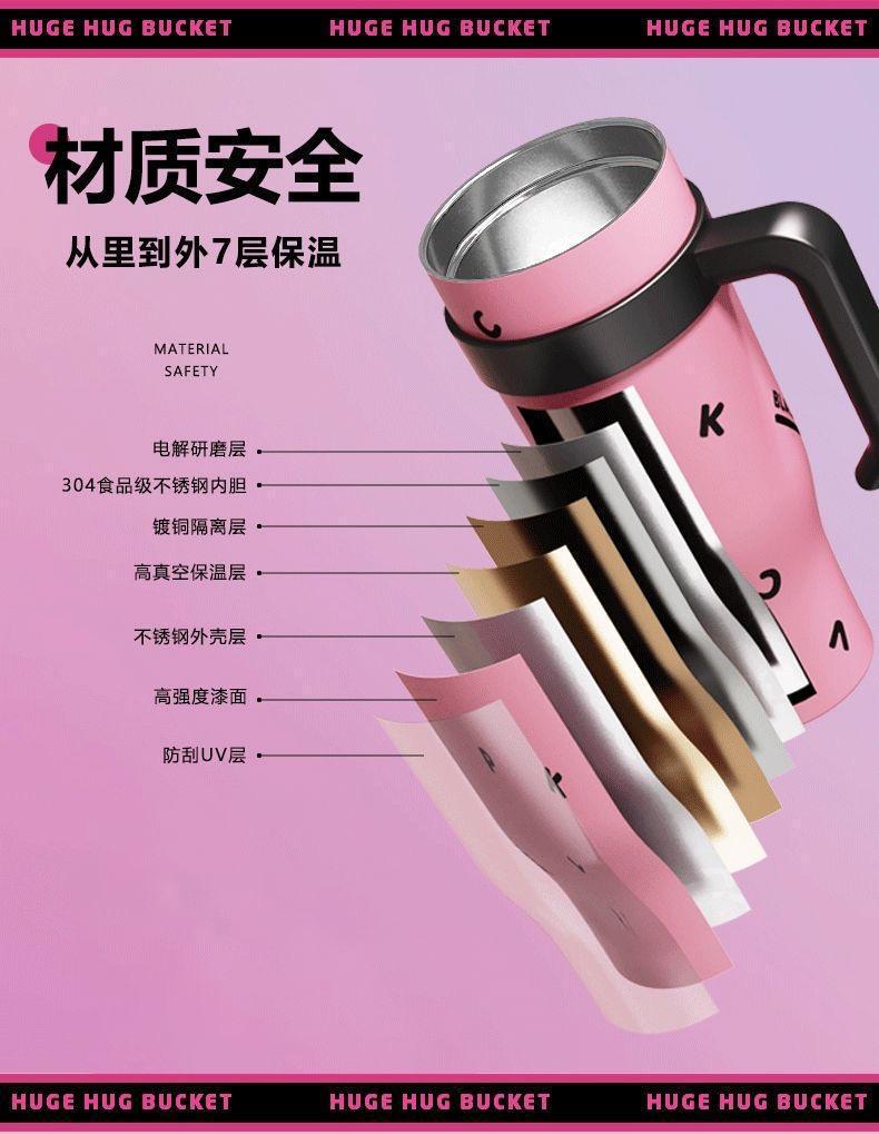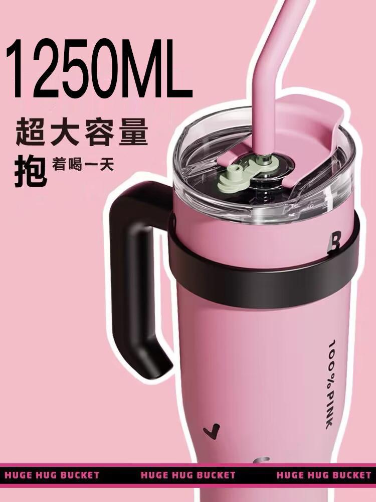 블랙 핑크 빅 맥 컵 40oz 아이스크림 컵 포옹 컵 대용량 스테인레스 스틸 진공 컵 핸들 물 컵 304