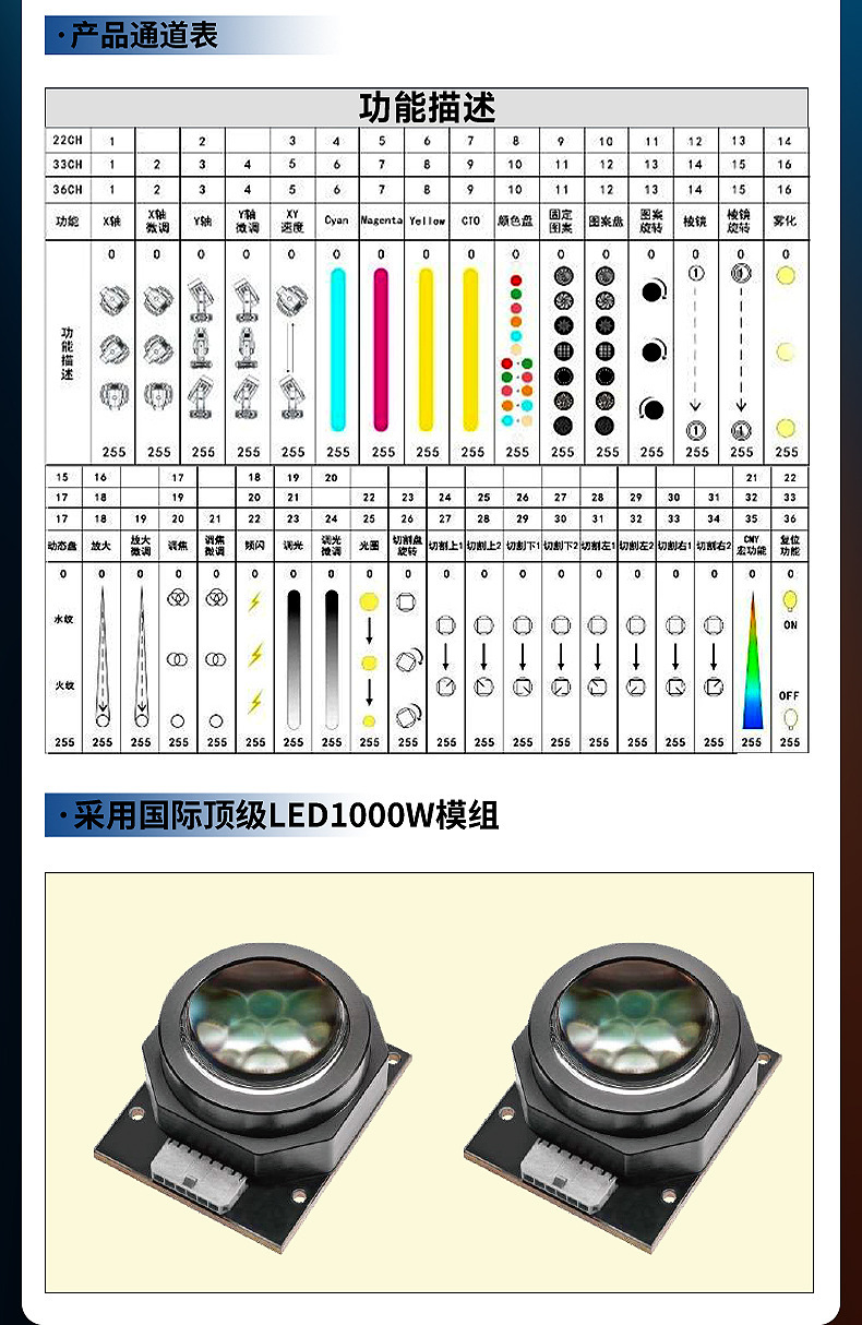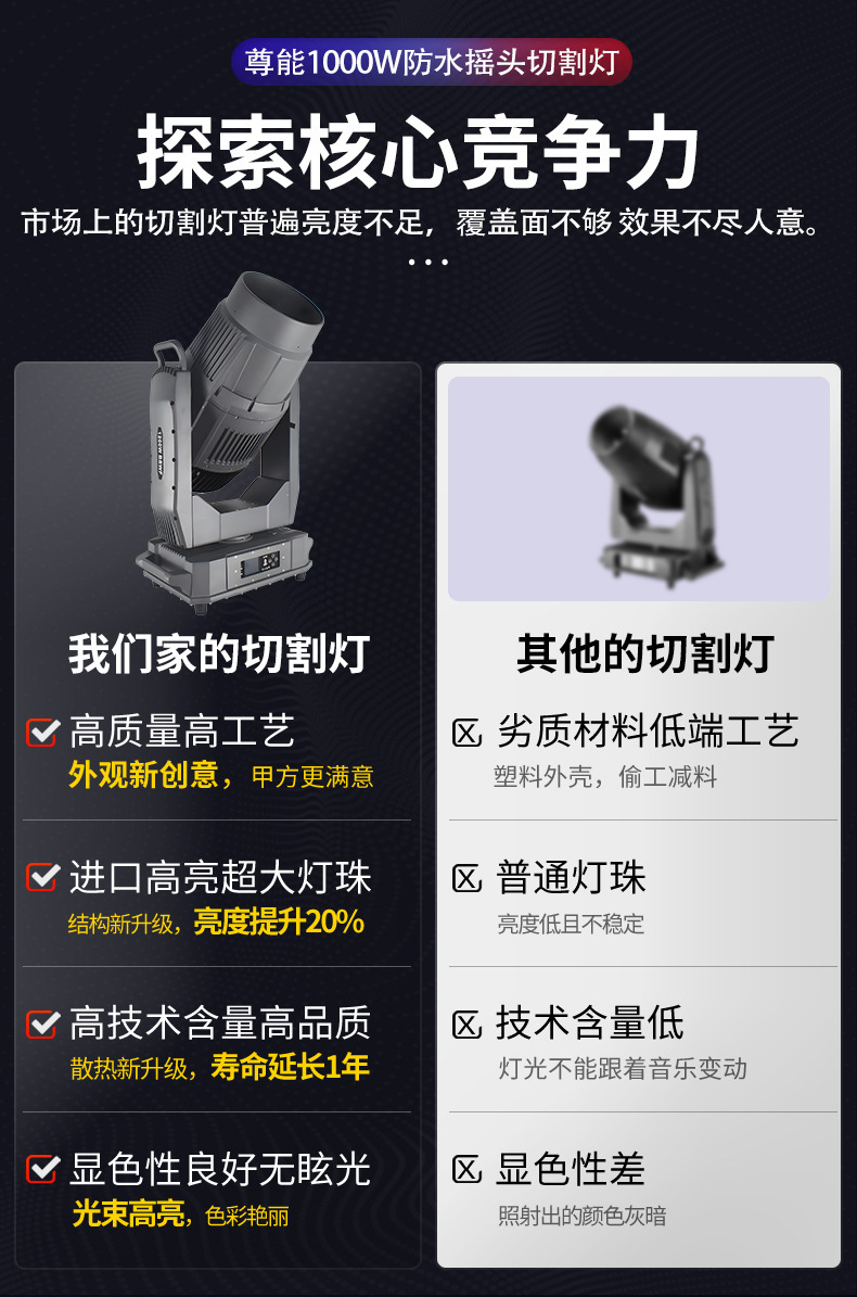 Jie Chuang 1000W 4 대 1 LED 움직이는 헤드 커팅 라이트 야외 무대 대형 투어 성능 경치 명소 조명 장비