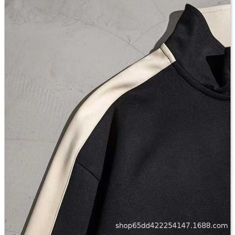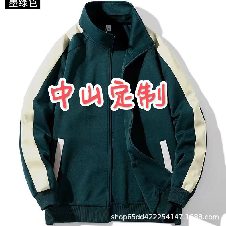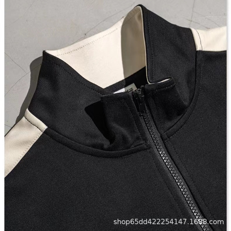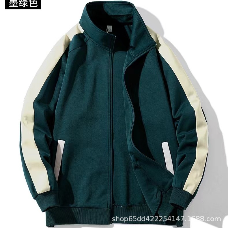 공장 맞춤형 남성 봄, 가을 미국 패션 브랜드 헤비 컬러 대비 지퍼 스탠드 칼라 루즈 스포츠 스웨트 셔츠 재킷스토어 가기