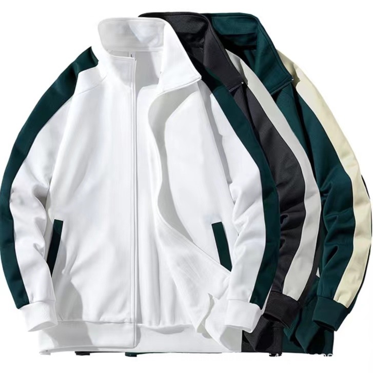 공장 맞춤형 남성 봄, 가을 미국 패션 브랜드 헤비 컬러 대비 지퍼 스탠드 칼라 루즈 스포츠 스웨트 셔츠 재킷