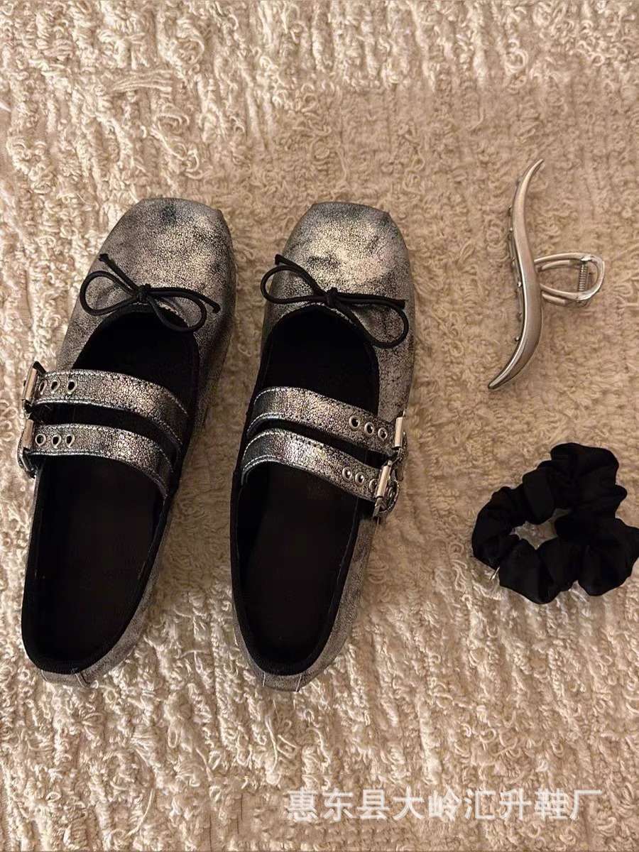 2026년형 레트로 슬림 슈즈 실버 레이스 발레 슈즈 워싱드 실버 발레 여성 플랫 슈즈