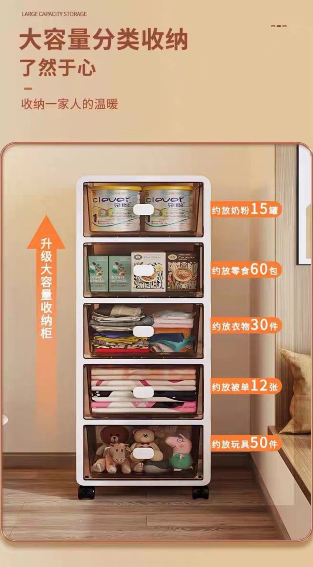 서랍형 수납장 다층 어린이 장난감 간식 가정용 수납장 수납함 거실 대형 수납장