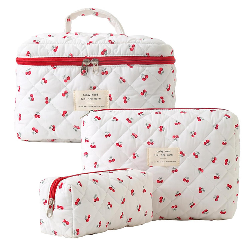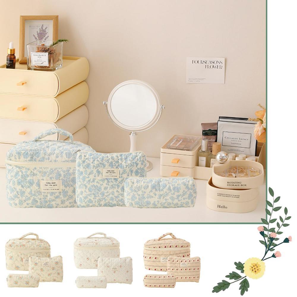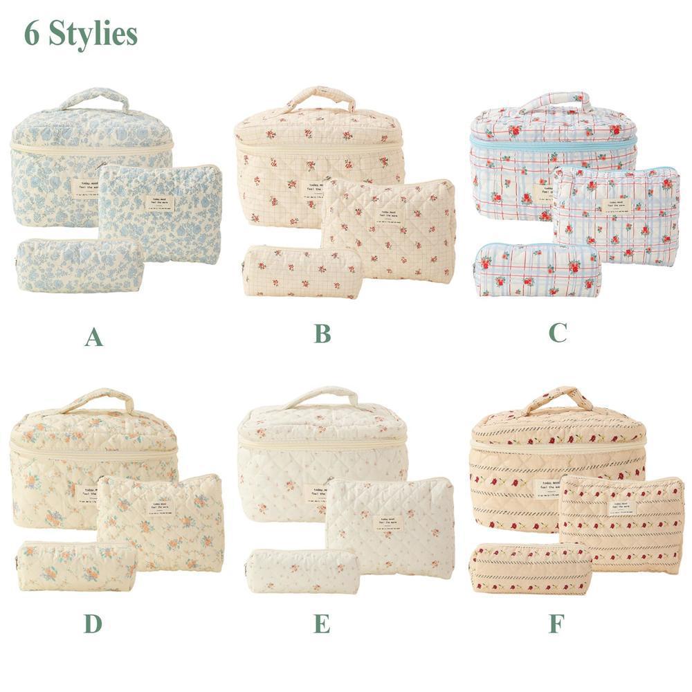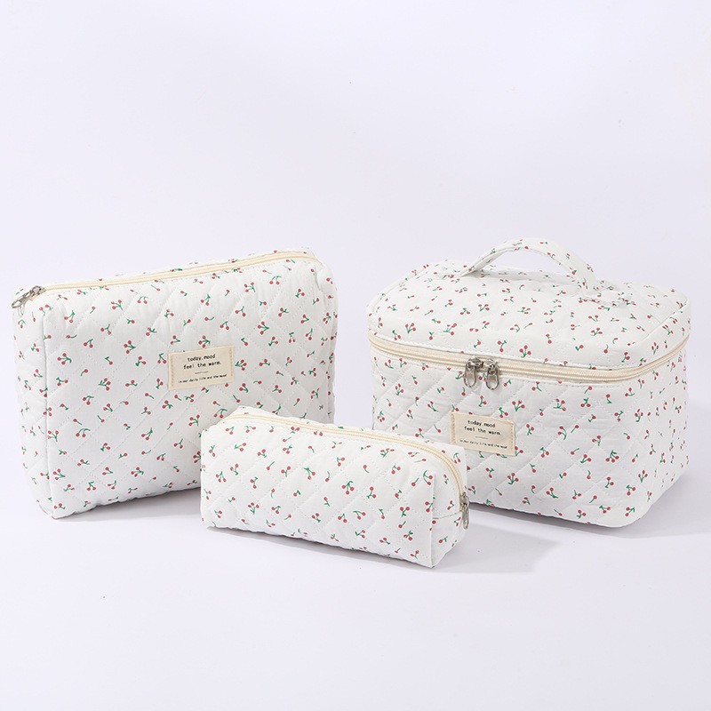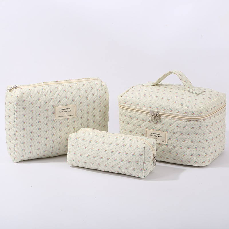 휴대용 대용량 화장품 가방 작은 꽃 저장 휴대용 퀼트 면 신선한 화장품 보관 가방