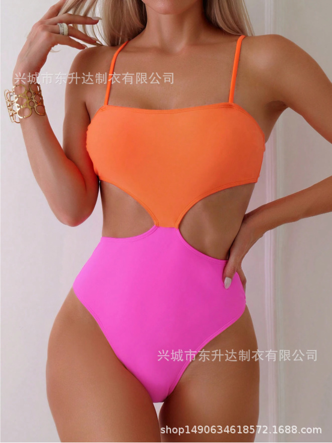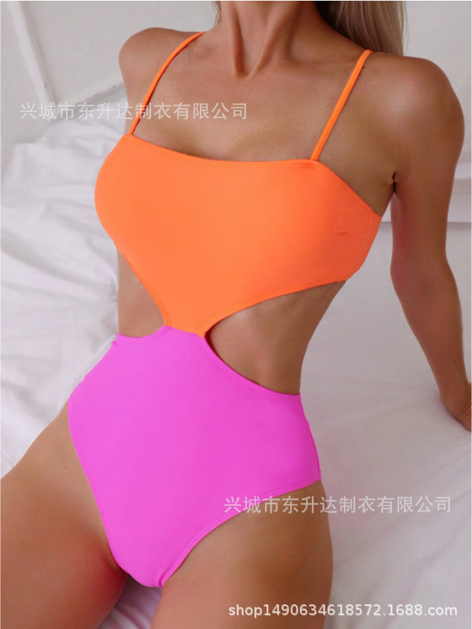 동성다 수영복 2024 배색 유럽풍 끈나시 원피스 수영복 비키니 섹시 원피스형