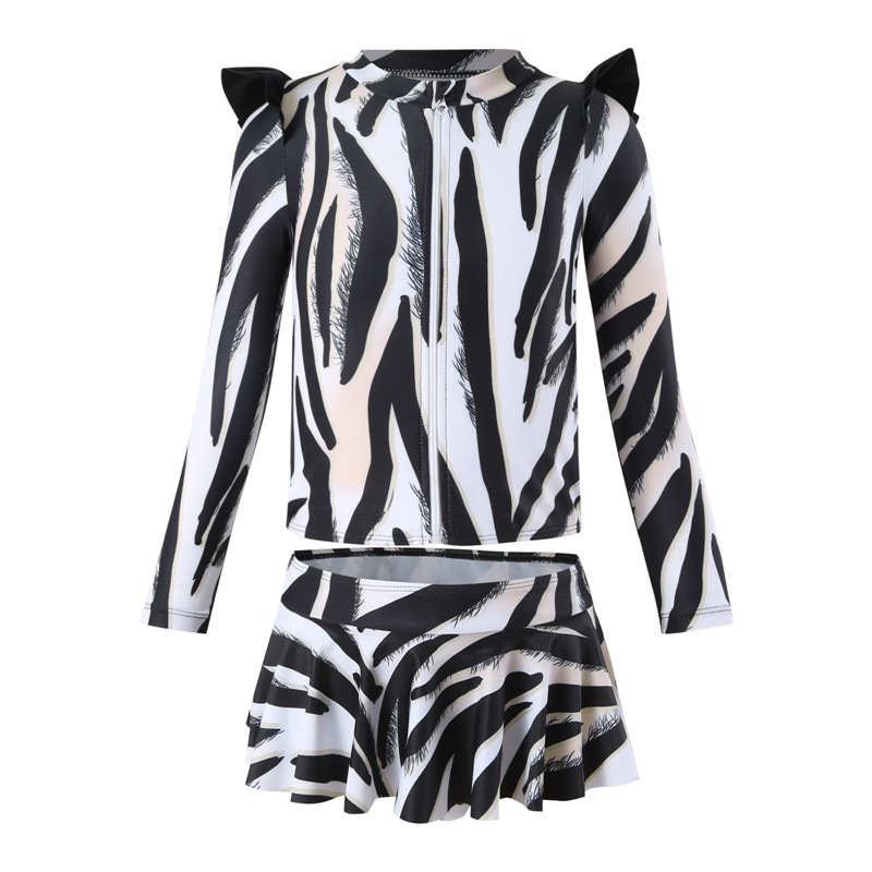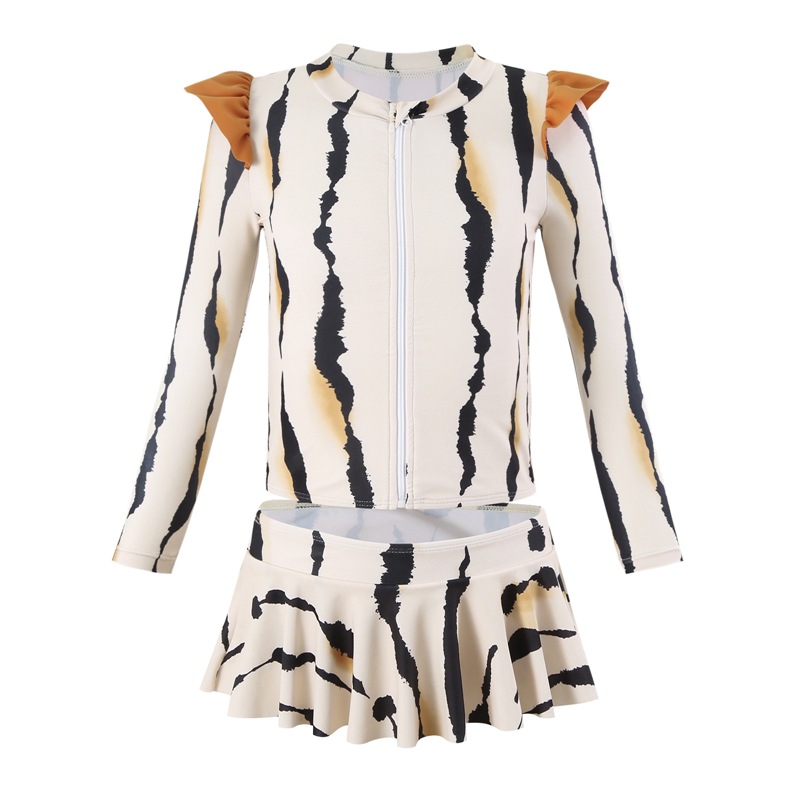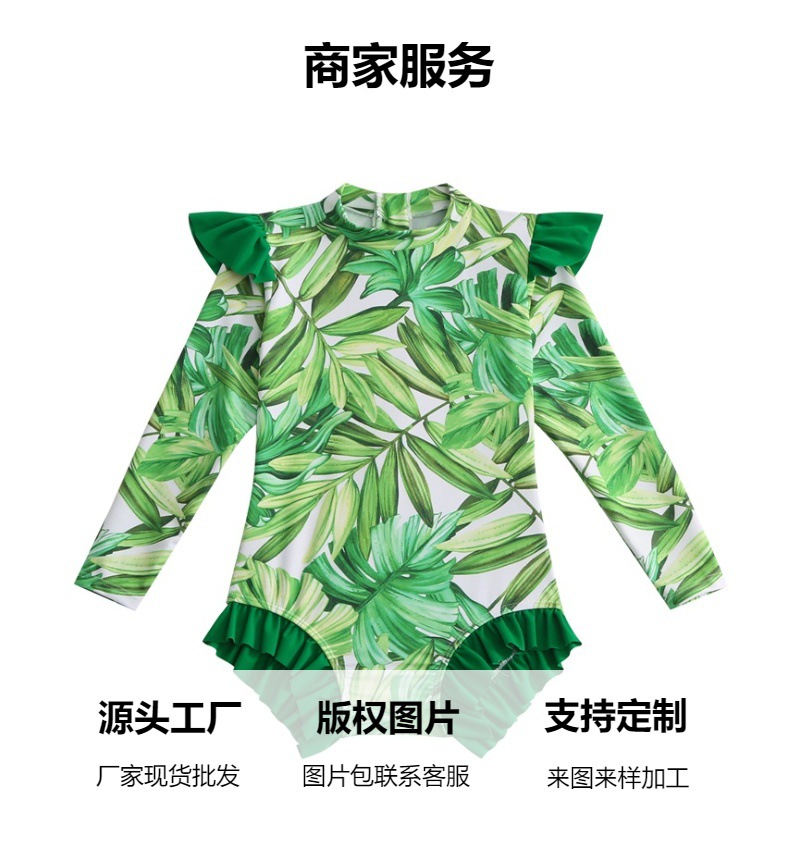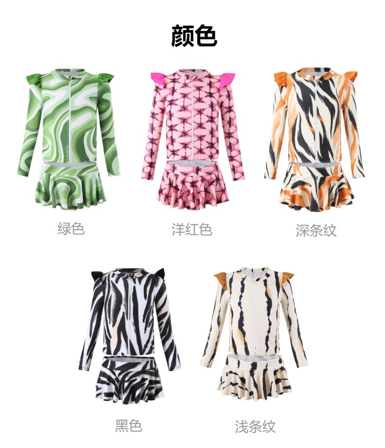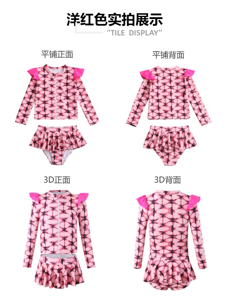 유럽과 미국의 긴팔 자외선 차단제 소녀 스플릿 수영복 플라잉 스커트 보수 학생 Huludao 수영복 공장 재고 도매