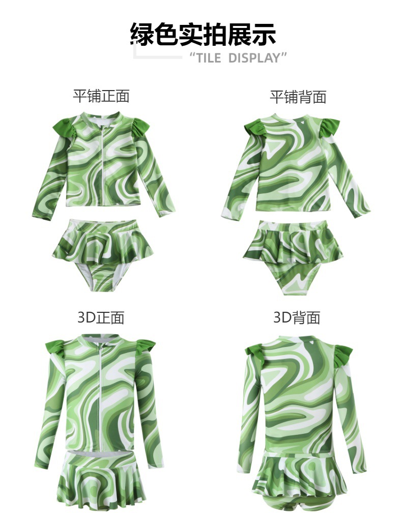 유럽과 미국의 긴팔 자외선 차단제 소녀 스플릿 수영복 플라잉 스커트 보수 학생 Huludao 수영복 공장 재고 도매스토어 가기