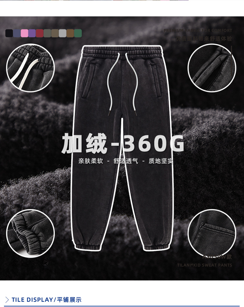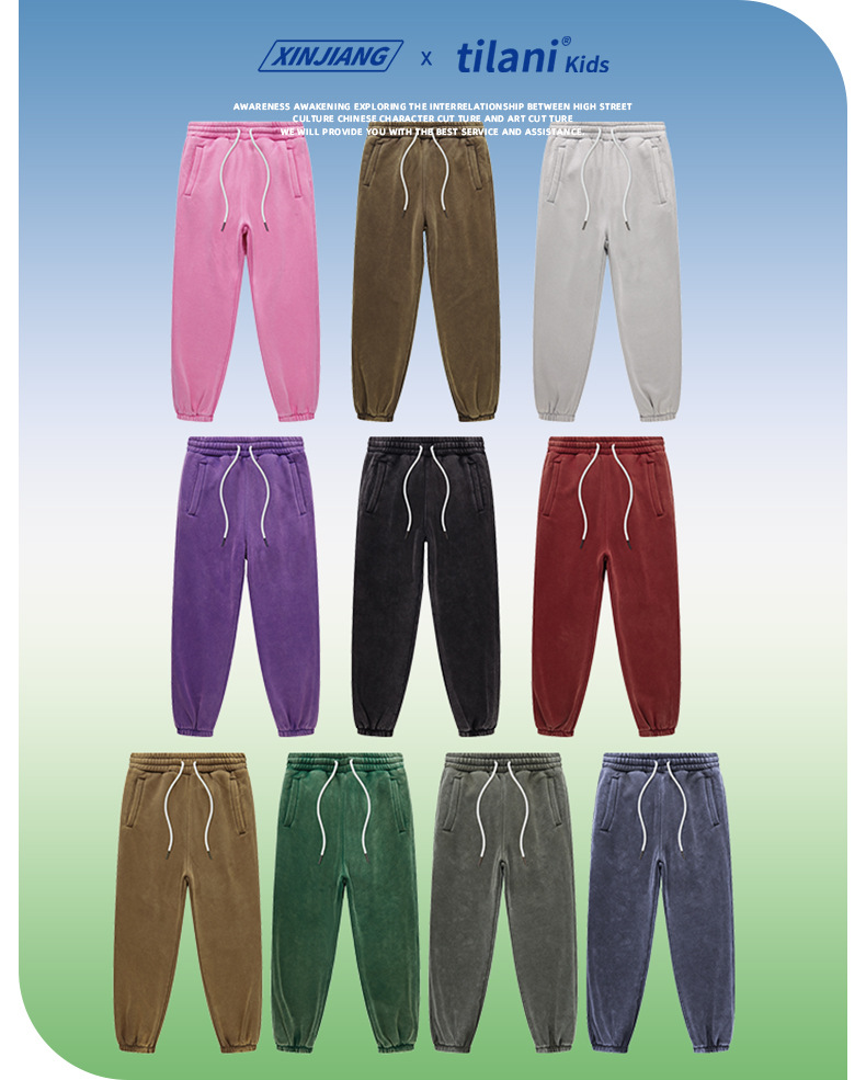 TILANI 아동복 유럽과 미국의 패션 브랜드 봄 씻은 오래 된 360G 양털 따뜻한 느슨한 캐주얼 남성 및 여성 바지스토어 가기