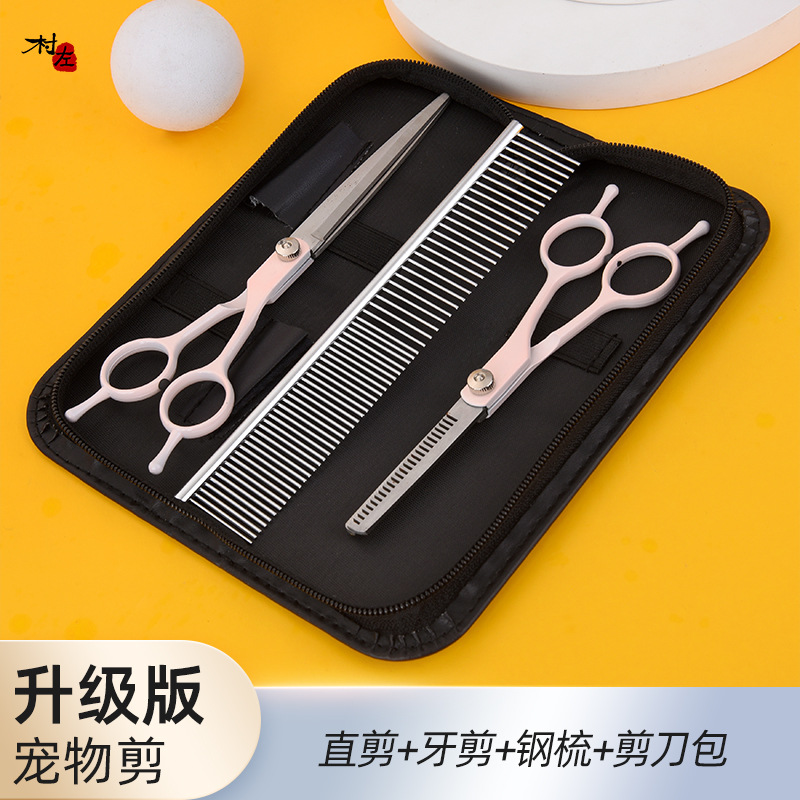 • 직선 가위 + 치아 가위 + 가위 가방 + 강철 빗