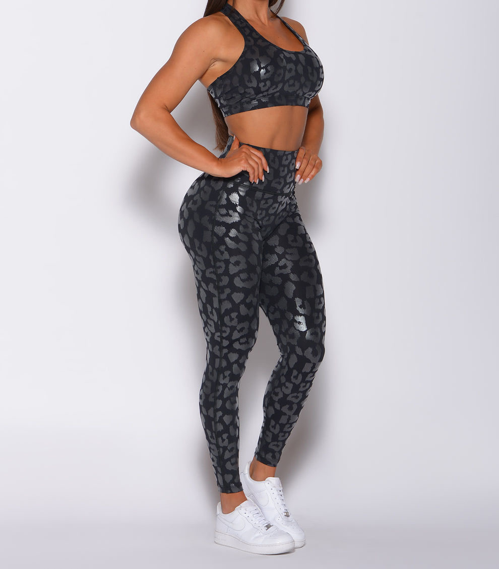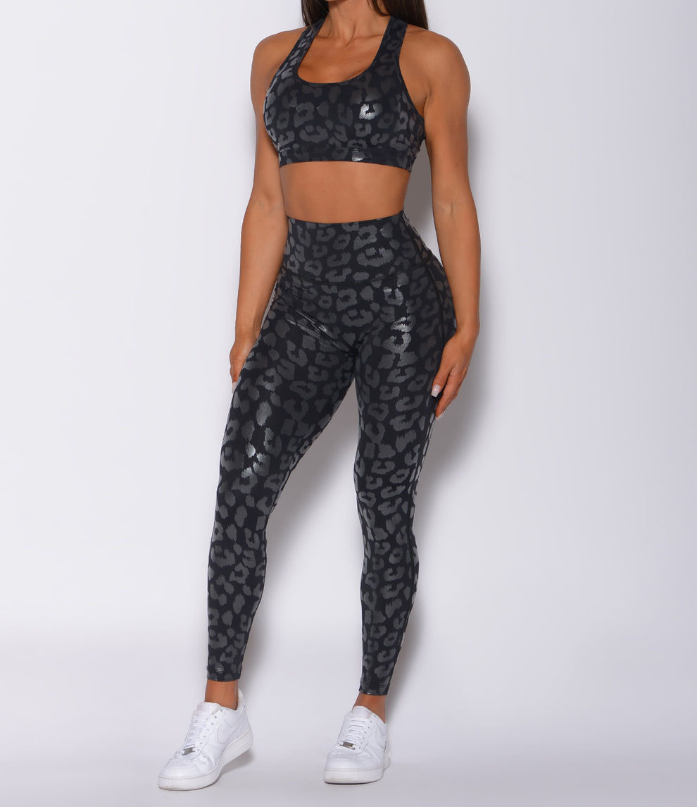대외 무역 독립 역 새로운 레오파드 무늬 스포츠 피트니스 조끼 높은 허리 엉덩이 리프팅 레깅스 바지 투피스 요가 세트