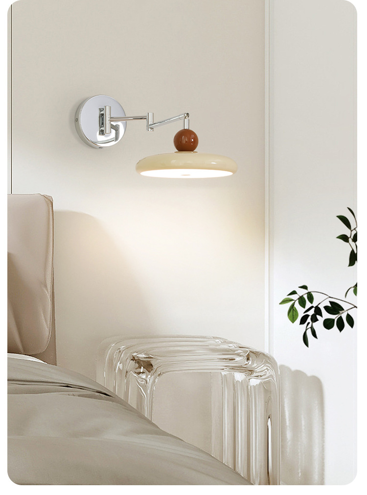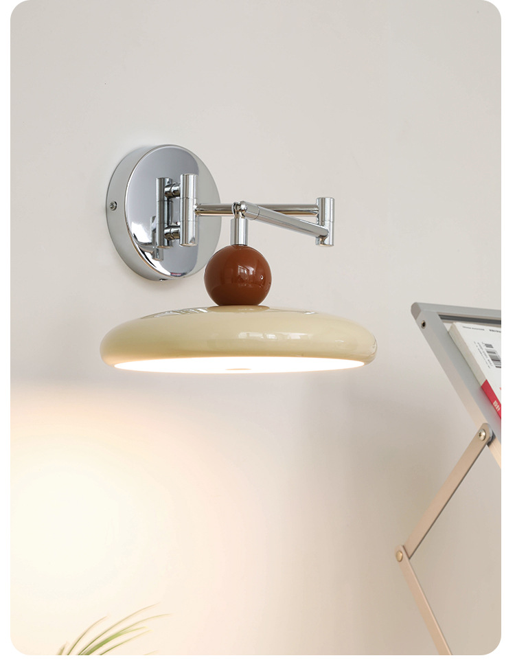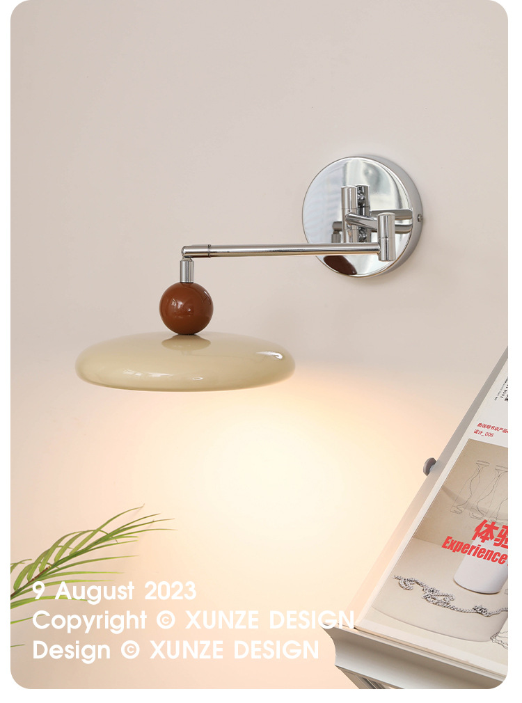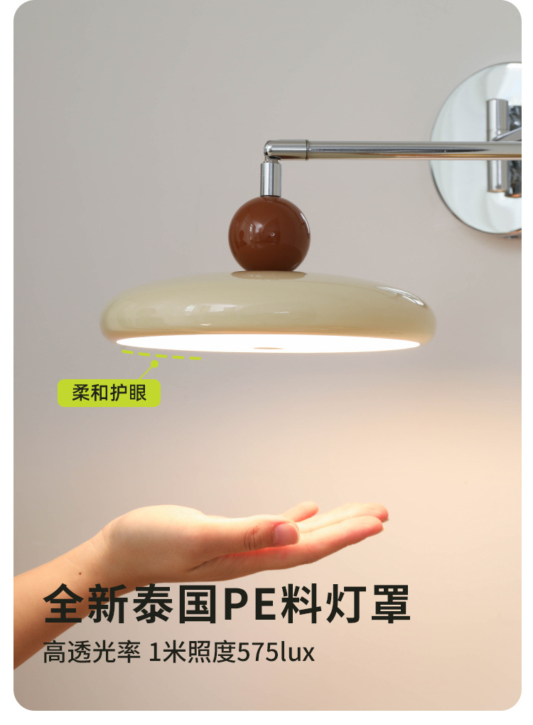 프랑스 크림 스타일 로커 팔 벽 램프 purui 전체 스펙트럼 침실 침대 옆 램프 배선 중반 고대 회전 가능한 긴 팔 램프