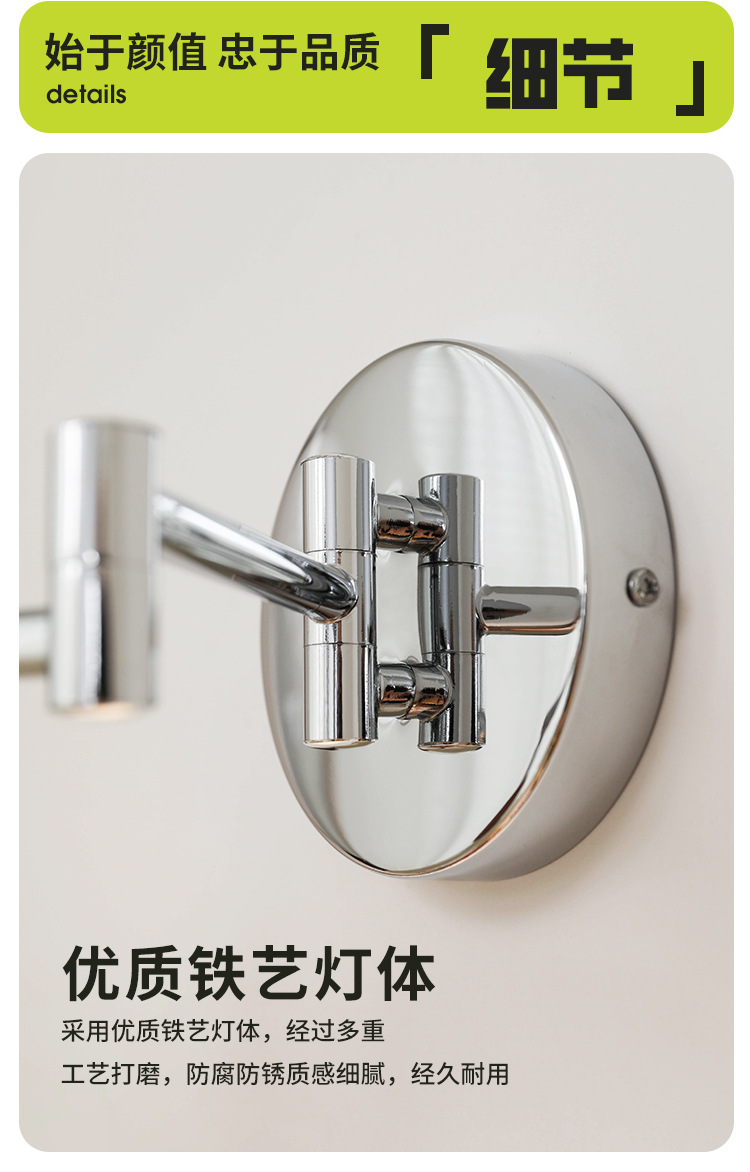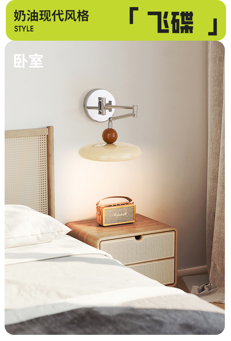 프랑스 크림 스타일 로커 팔 벽 램프 purui 전체 스펙트럼 침실 침대 옆 램프 배선 중반 고대 회전 가능한 긴 팔 램프스토어 가기