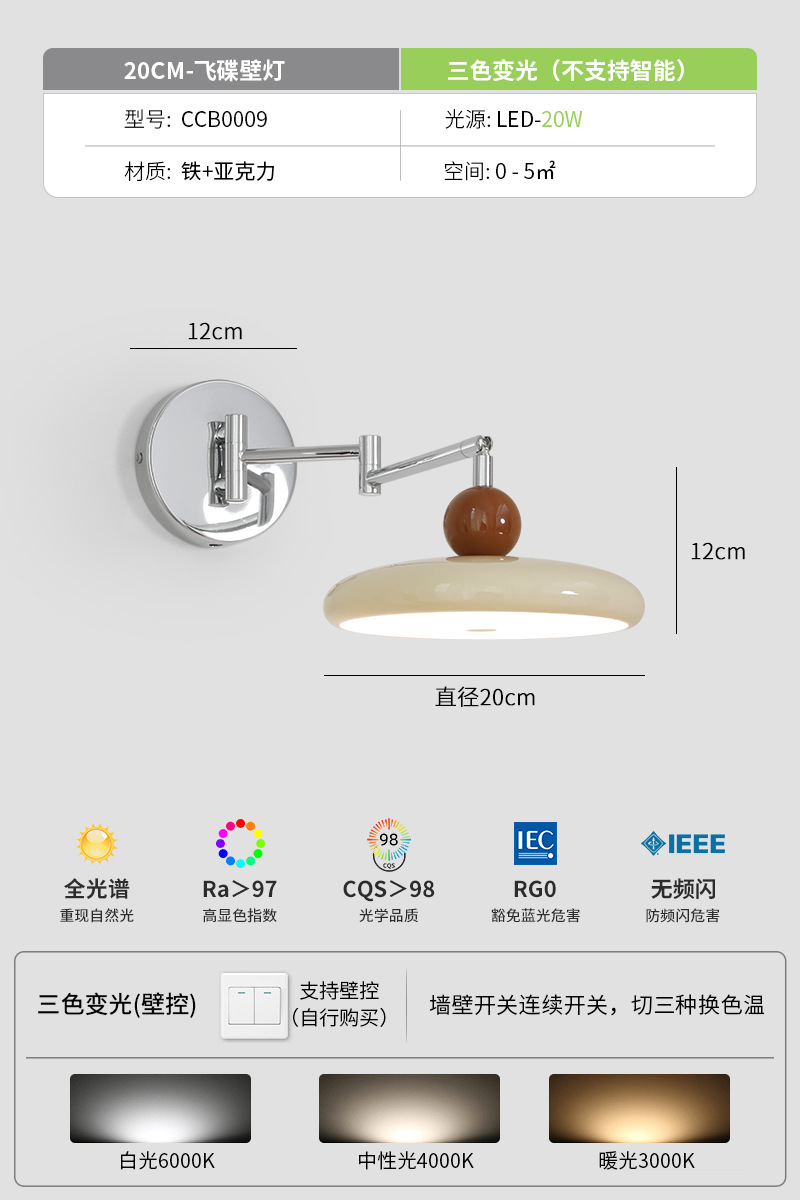 • 크림 yellow-20CM-Puri 3 색 빛 24W