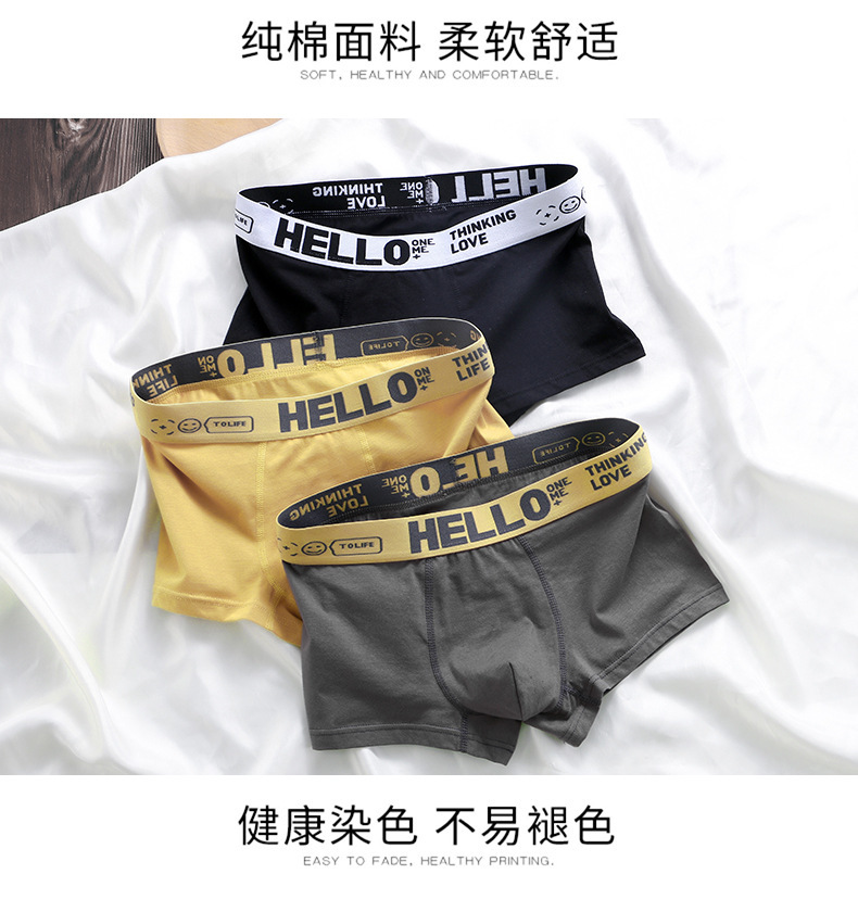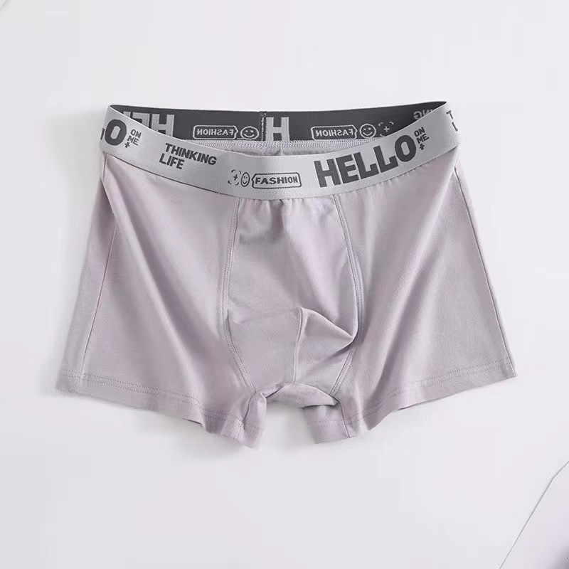 HELLO 남성 밀크 실크 복서 브리프 중간 허리 편안한 아이스 실크 대비 하이 바운스 허리 유행 복서 브리프스토어 가기