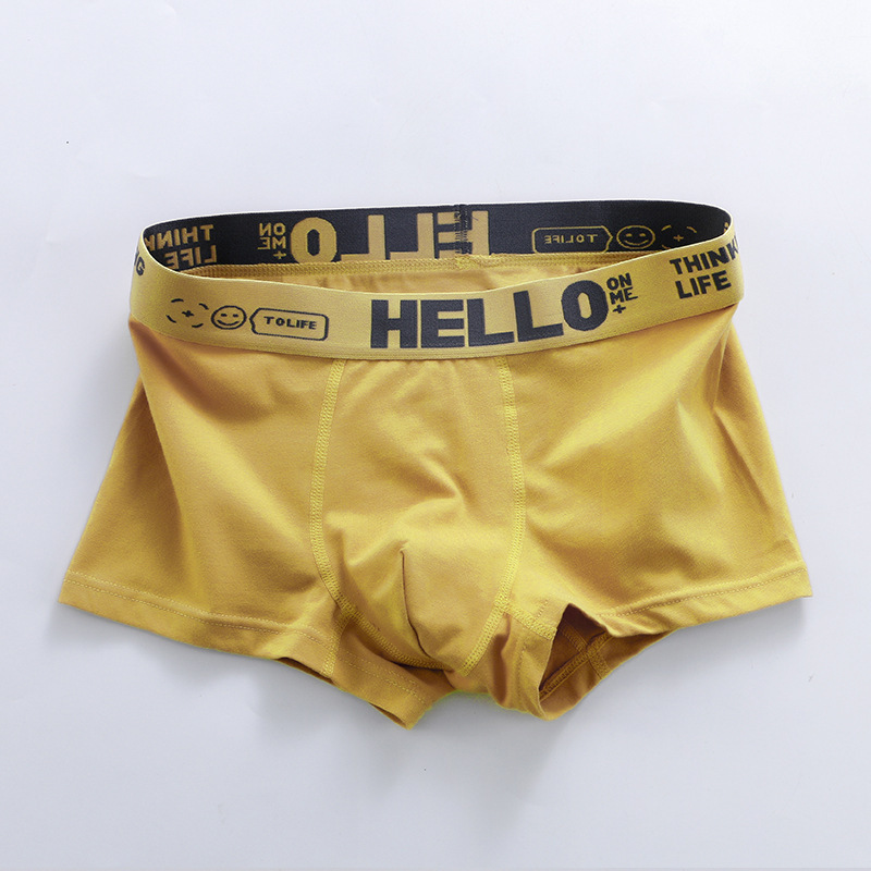 HELLO 남성 밀크 실크 복서 브리프 중간 허리 편안한 아이스 실크 대비 하이 바운스 허리 유행 복서 브리프