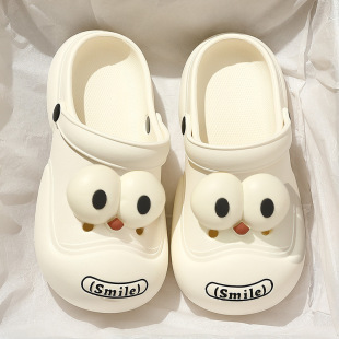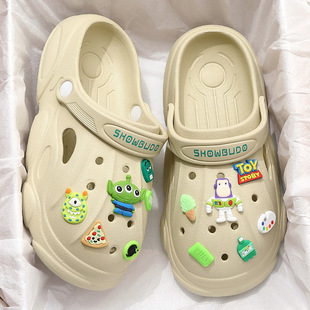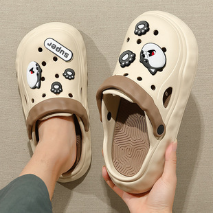踩屎感洞洞鞋女夏季2023新款芝麻街厚底包头拖鞋男夏防滑外穿批发