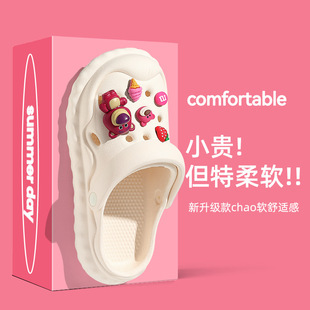 洞洞鞋女夏季外穿2023新款草莓熊厚底沙滩防滑踩屎感包头拖鞋男夏