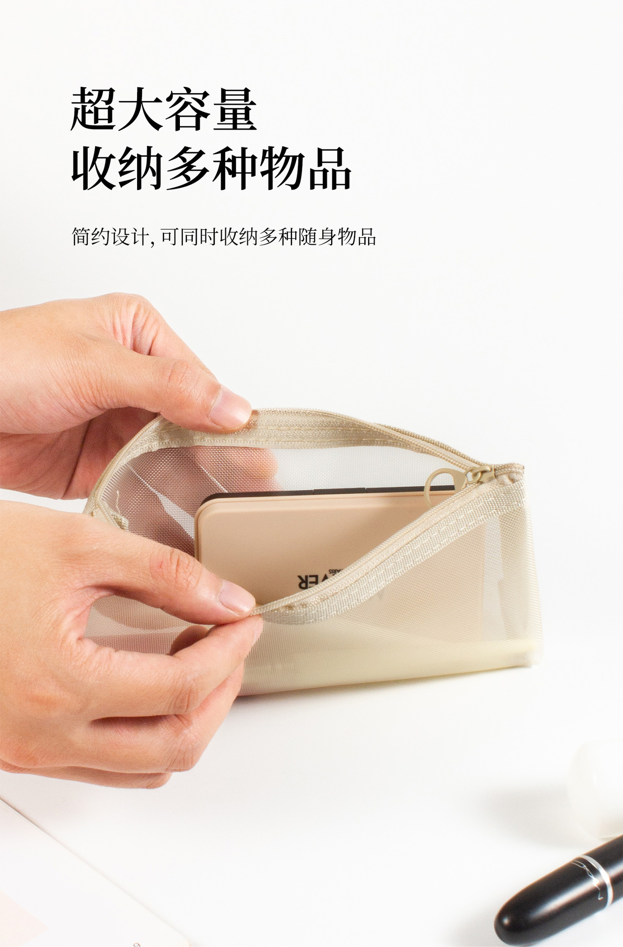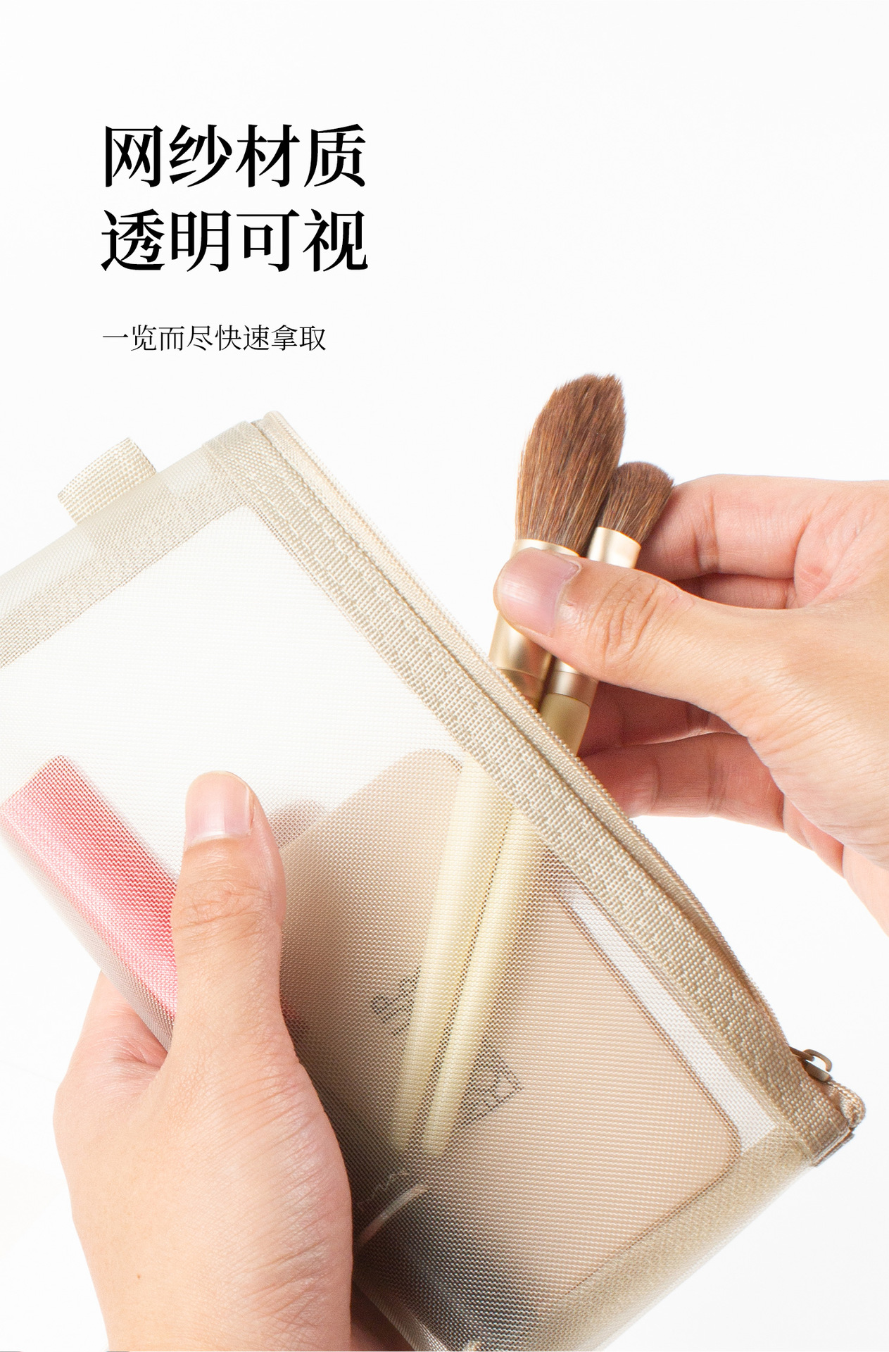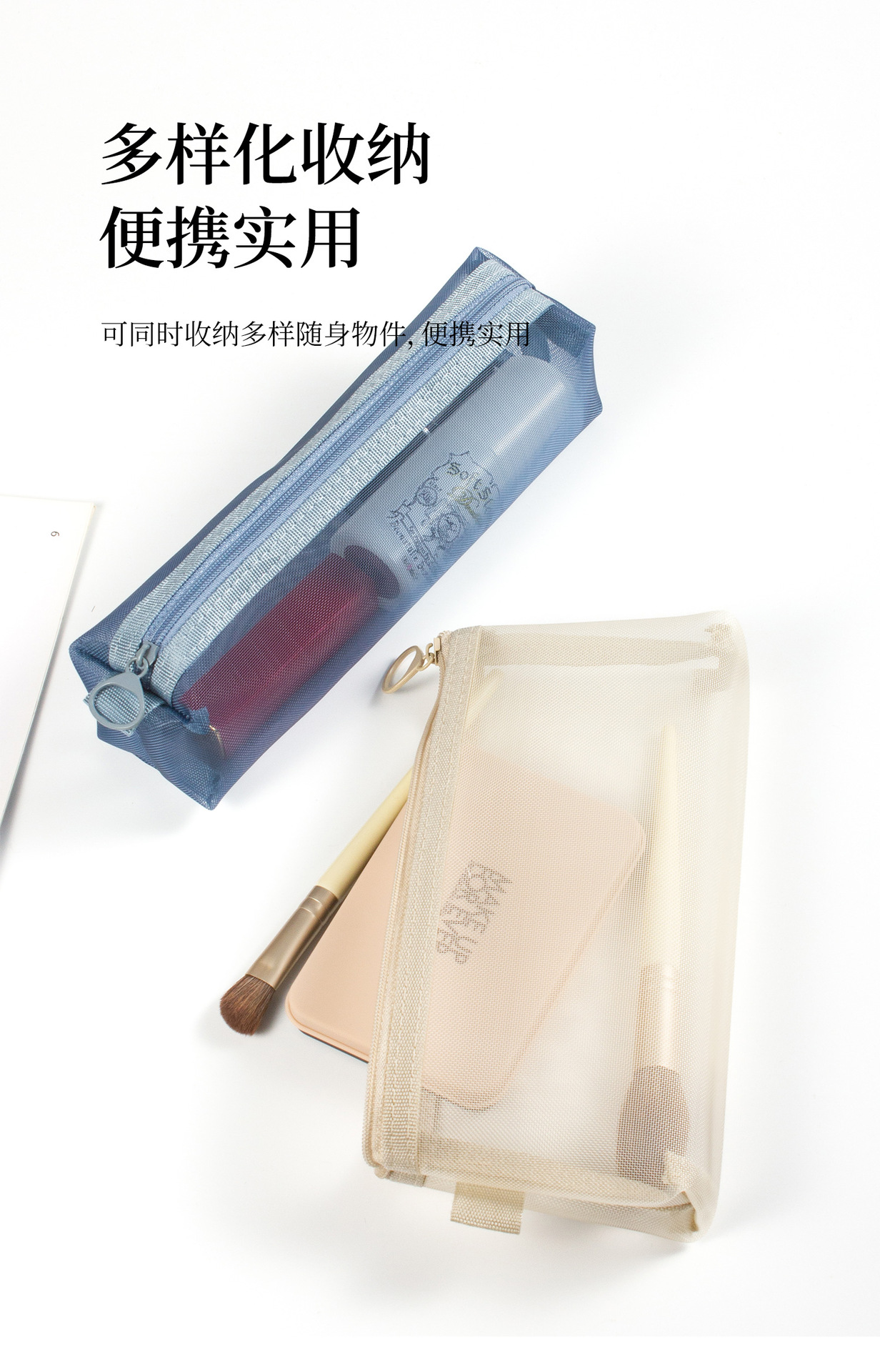 메쉬 화장품 보관 가방 대용량 휴대용 투명 세척 가방 3 차원 나일론 동전 가방 카드 보관 가방