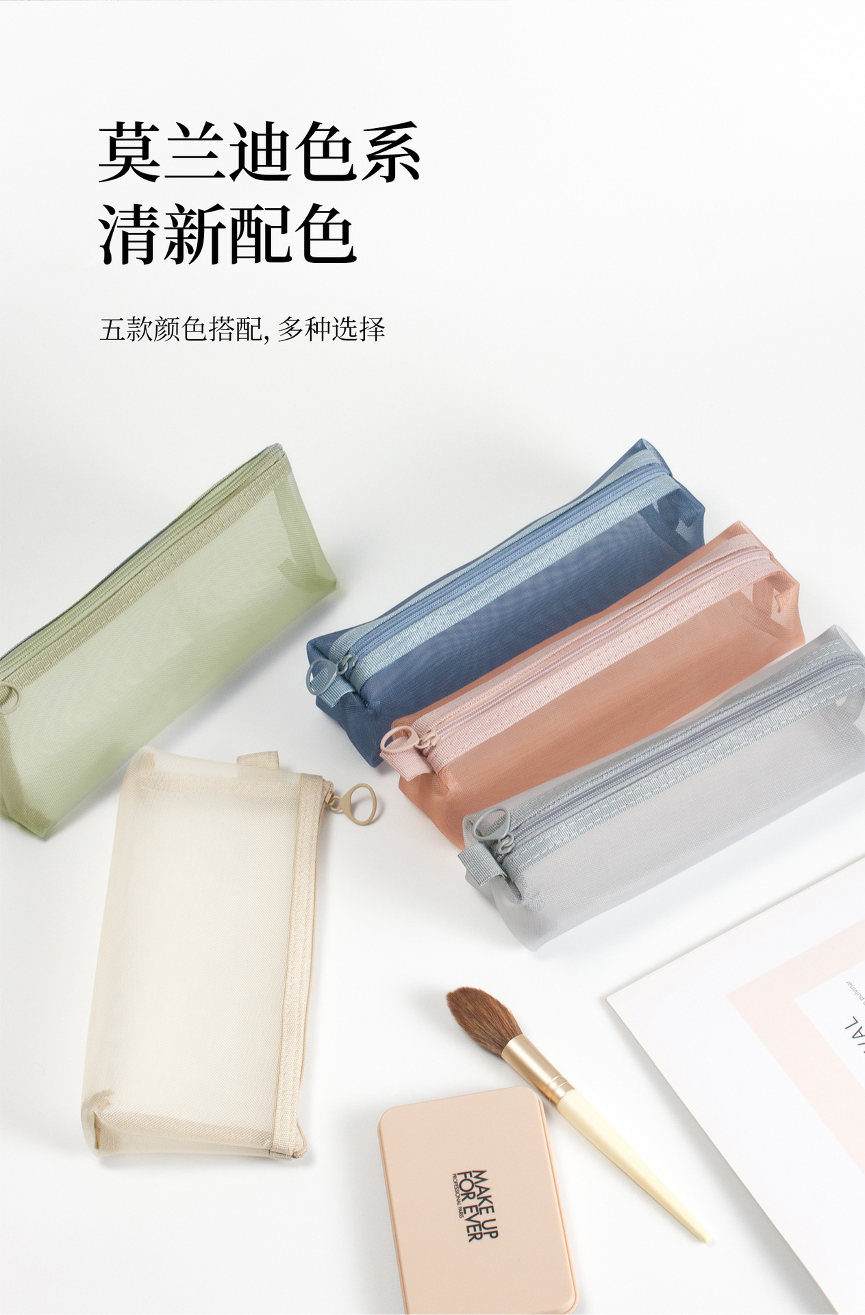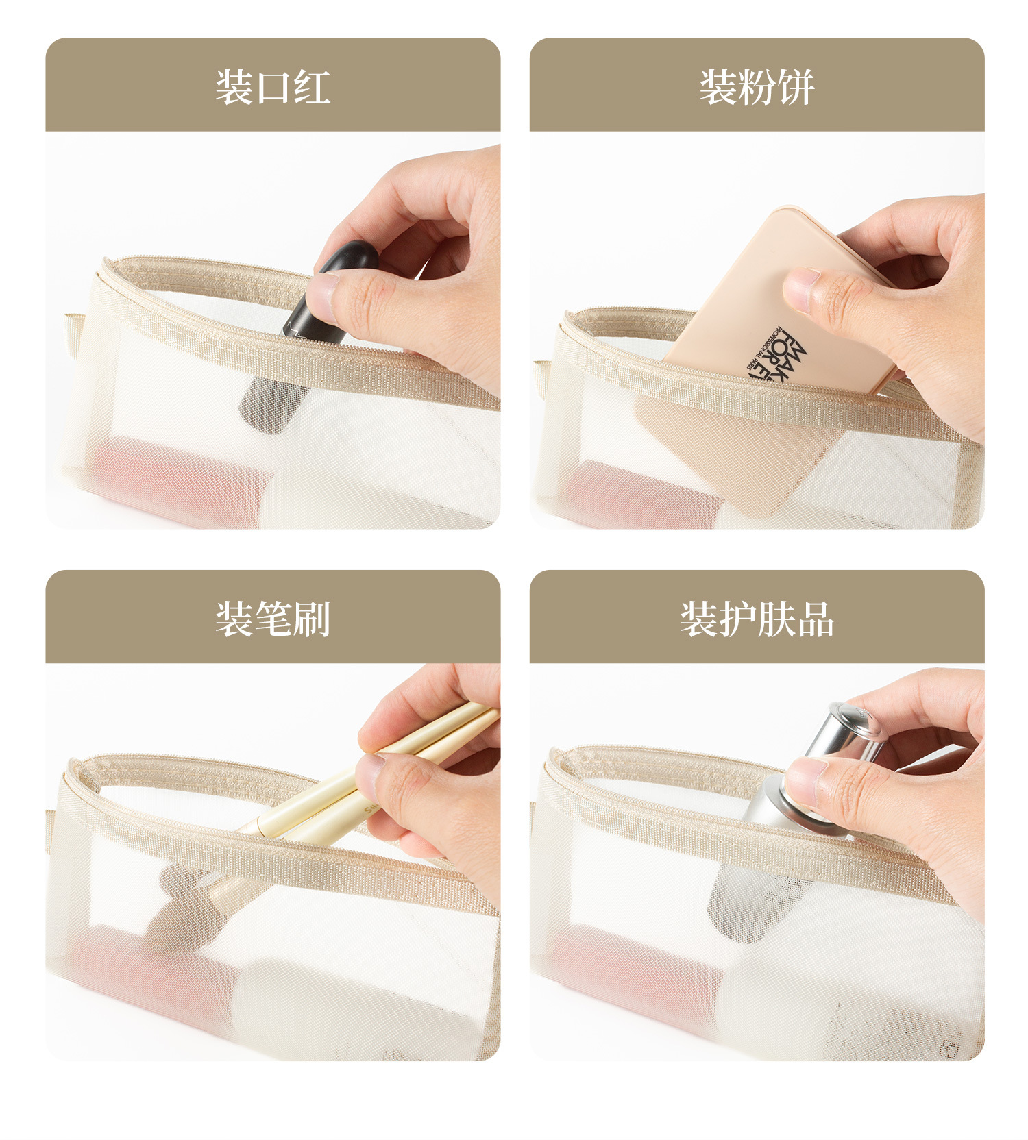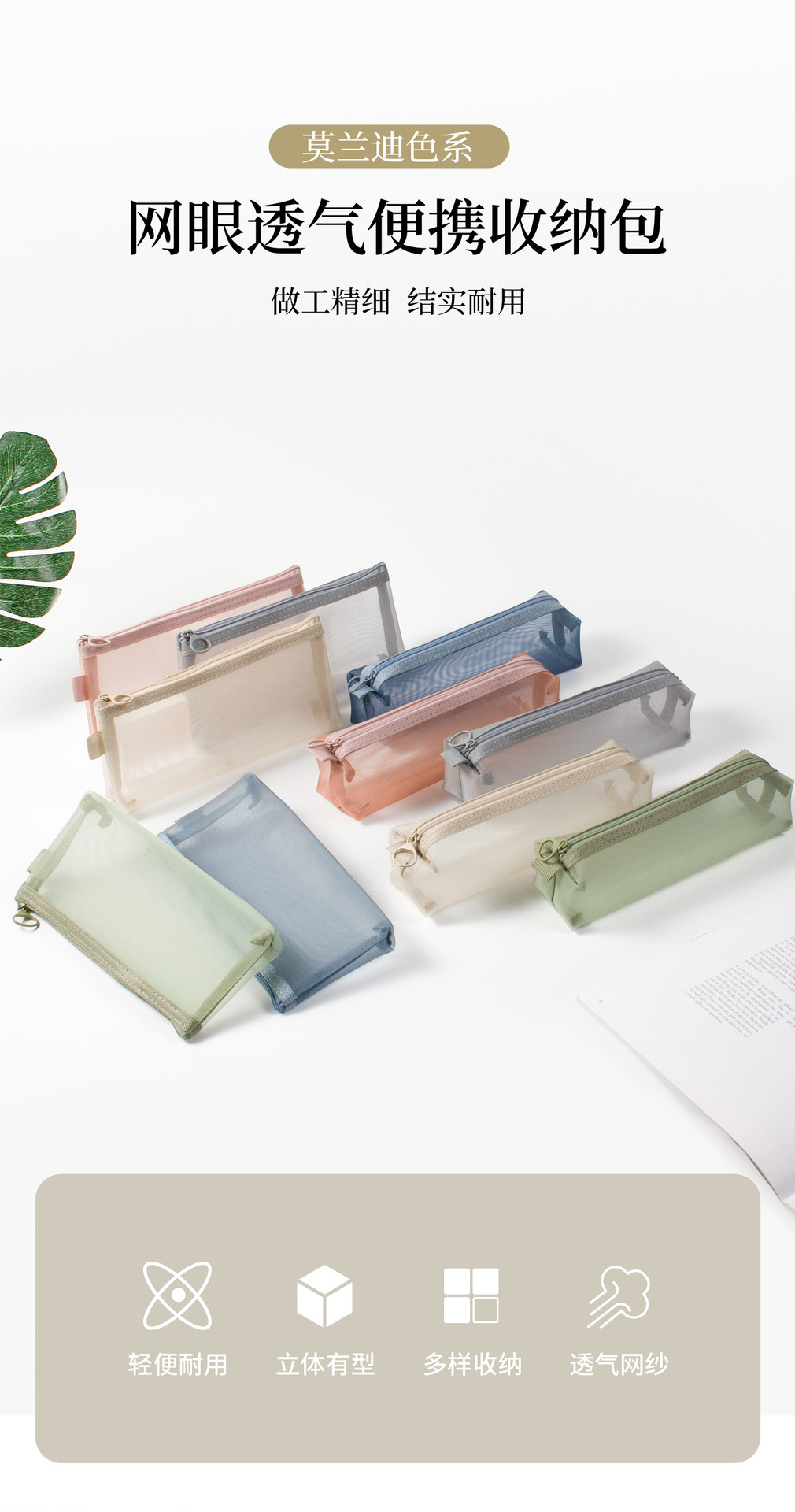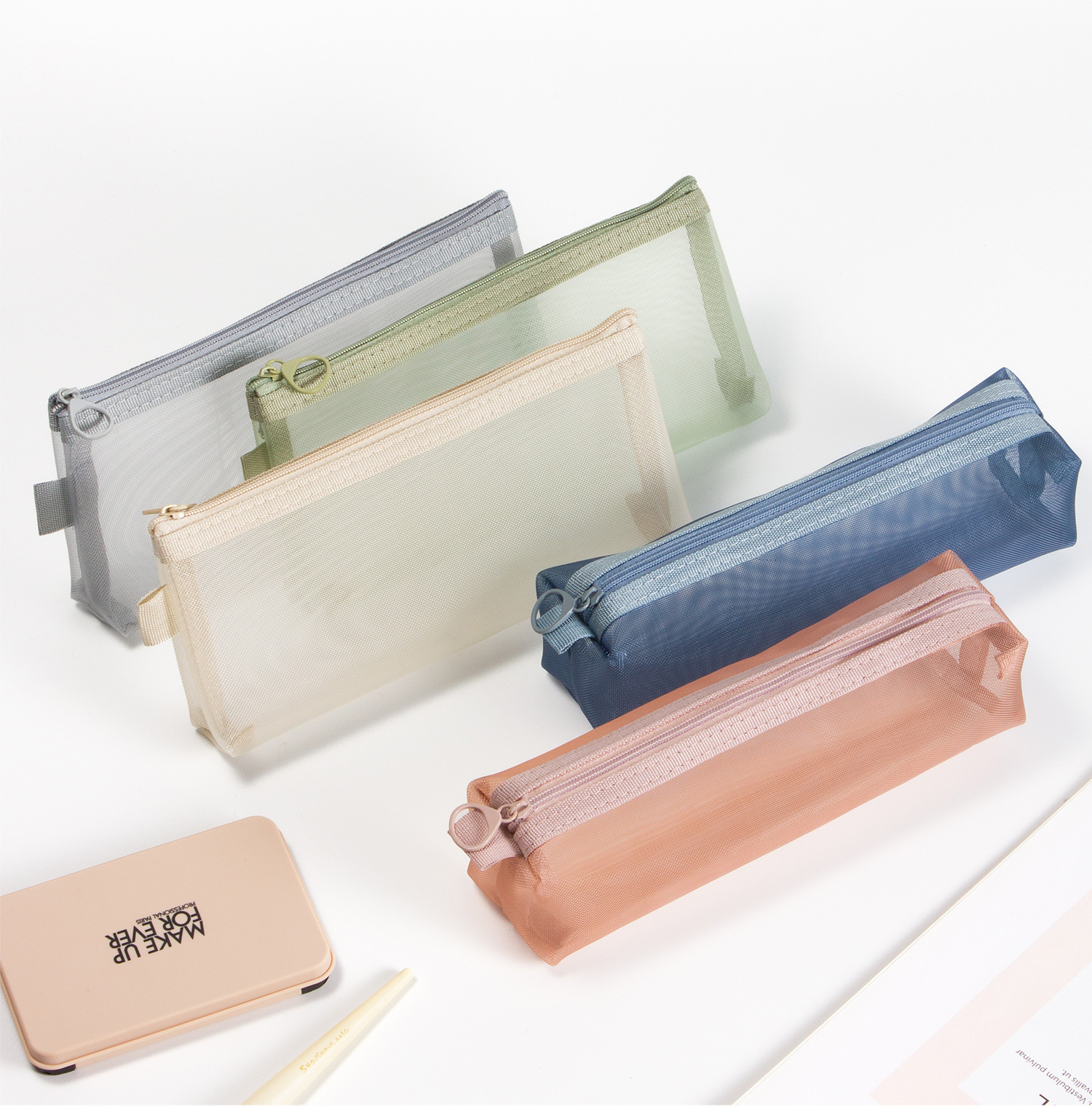 메쉬 화장품 보관 가방 대용량 휴대용 투명 세척 가방 3 차원 나일론 동전 가방 카드 보관 가방