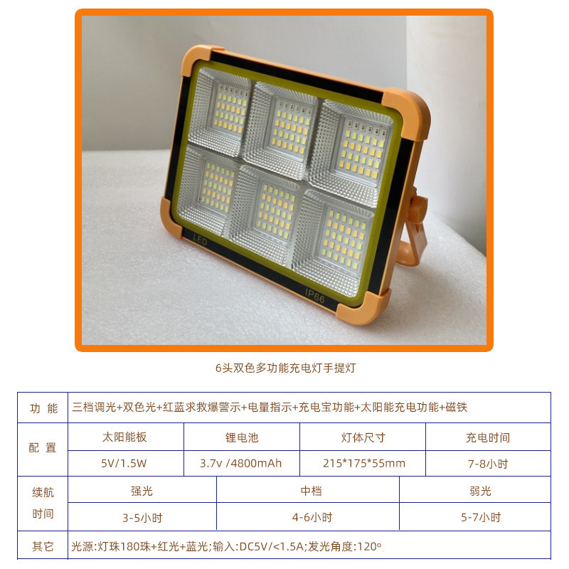 • 오렌지-6 헤드 다기능 충전 램프 휴대용 램프