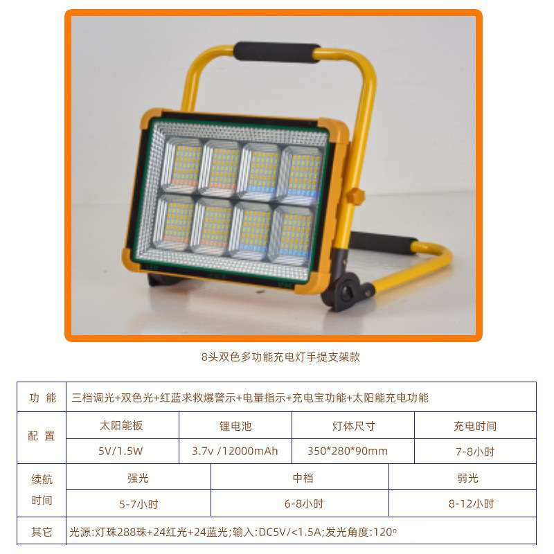 • 오렌지-8 헤드 다기능 충전 램프 휴대용 브래킷