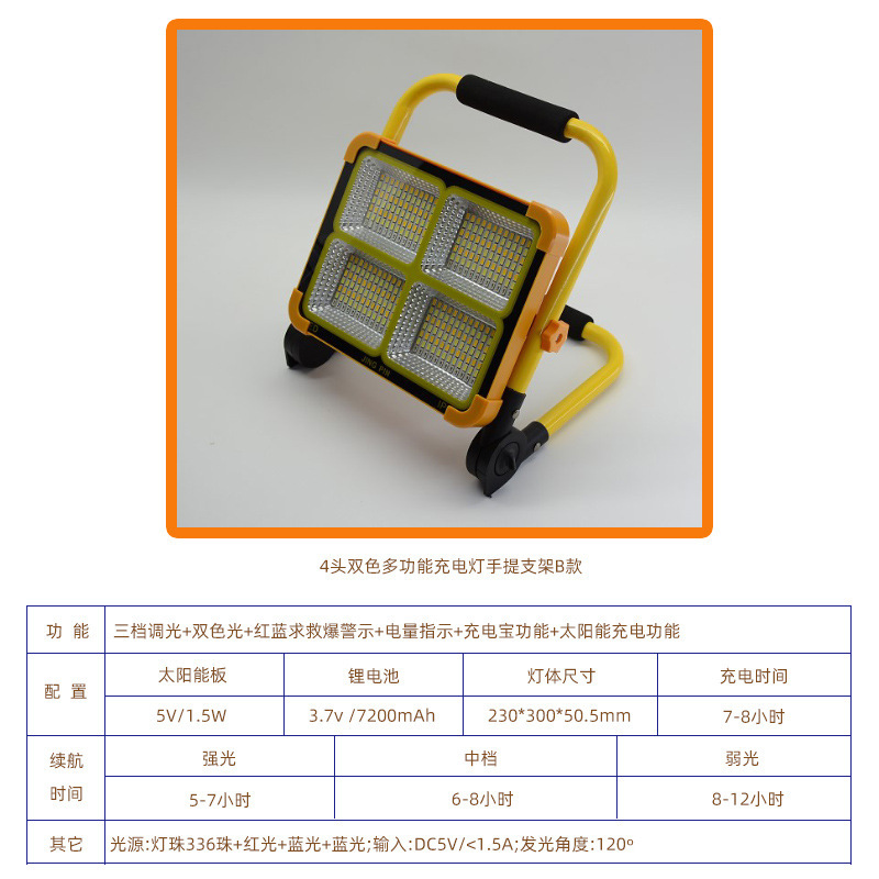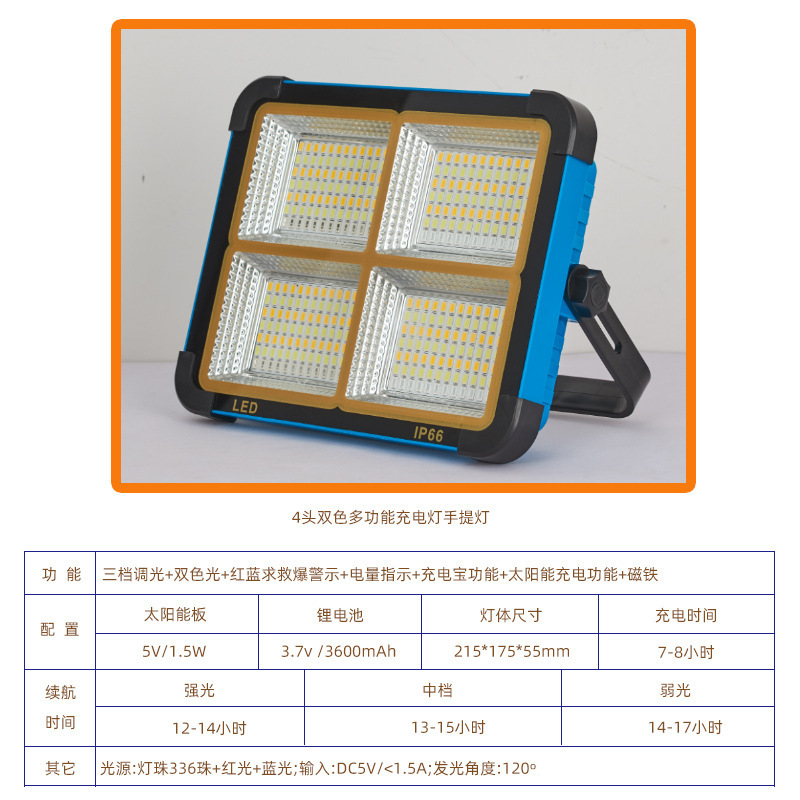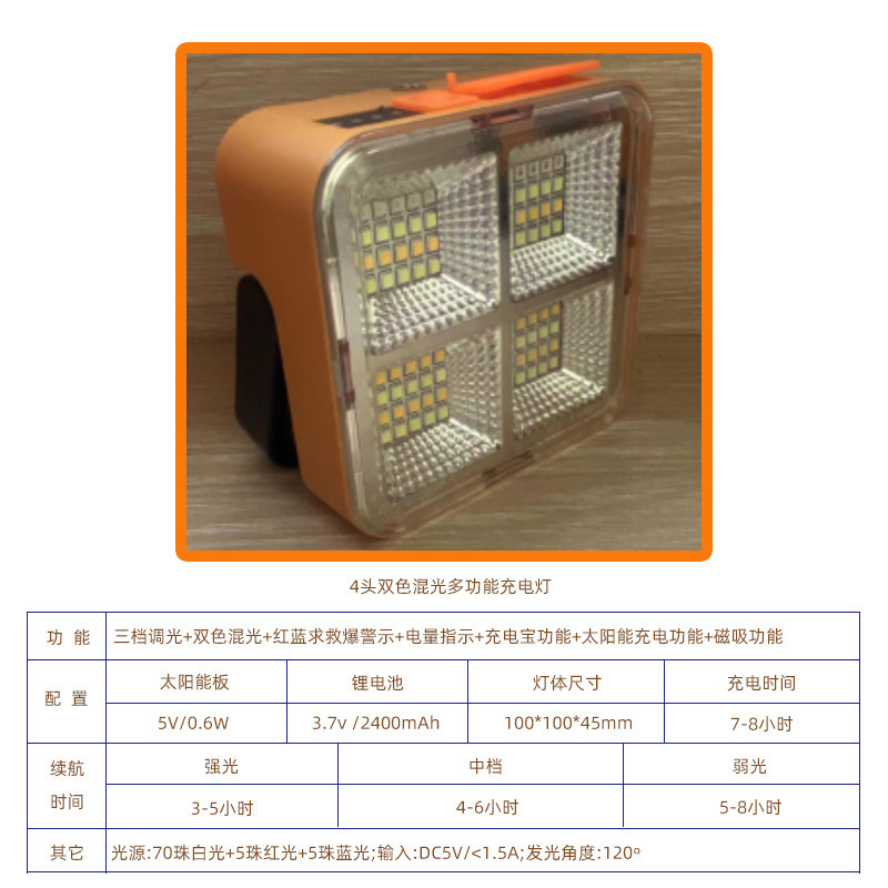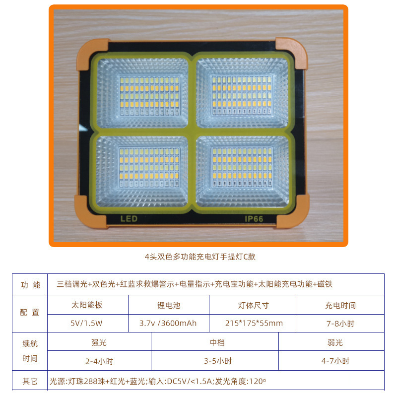 • 오렌지-4 헤드 2 색 다기능 충전 램프 휴대용 램프 유형 C