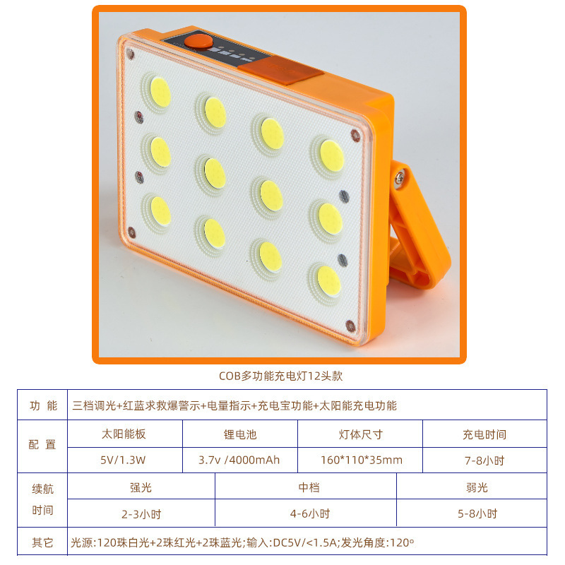 • 오렌지-COB 다기능 충전 램프 12-헤드