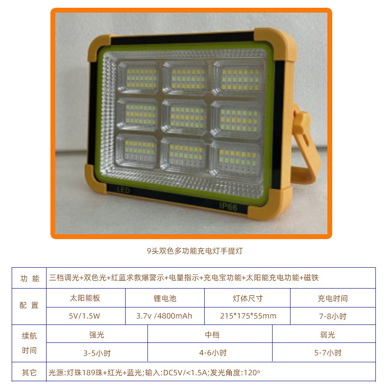 • 오렌지-9 헤드 다기능 충전 램프 휴대용 램프