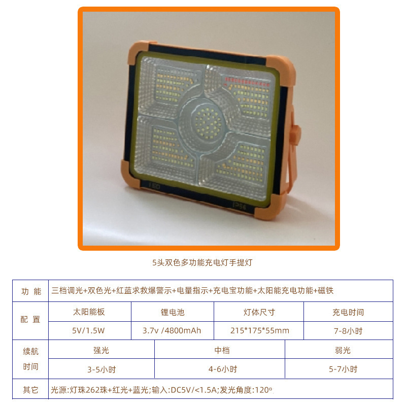 • 오렌지-5 헤드 다기능 충전 램프 휴대용 램프