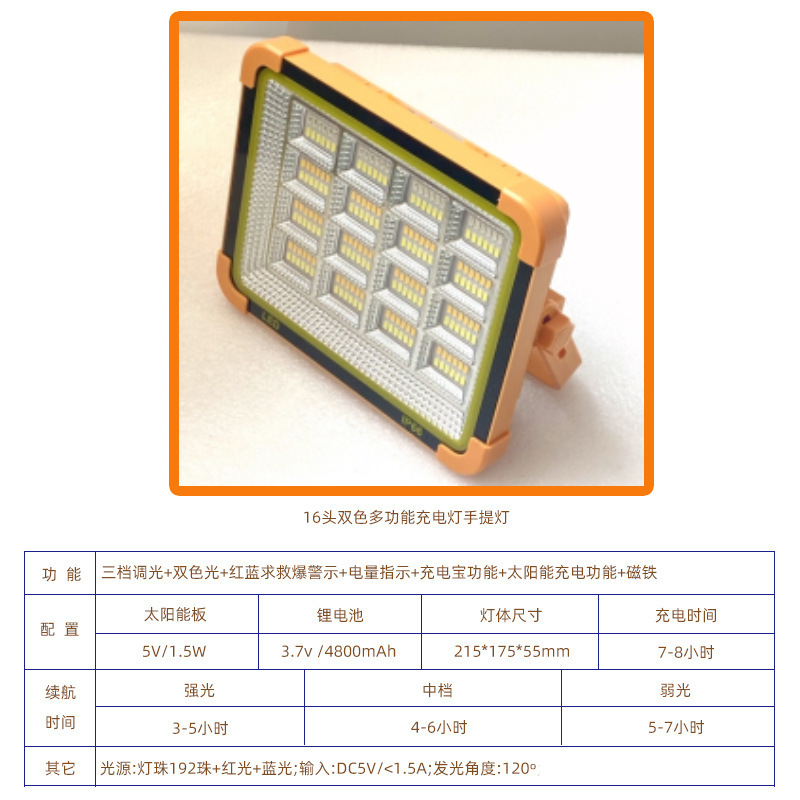• 오렌지-16 헤드 다기능 충전 램프 휴대용 램프