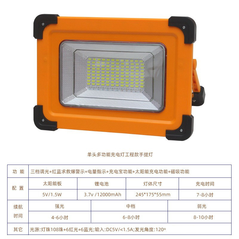 • 오렌지-단일 헤드 다기능 충전 램프 엔지니어링 휴대용 램프