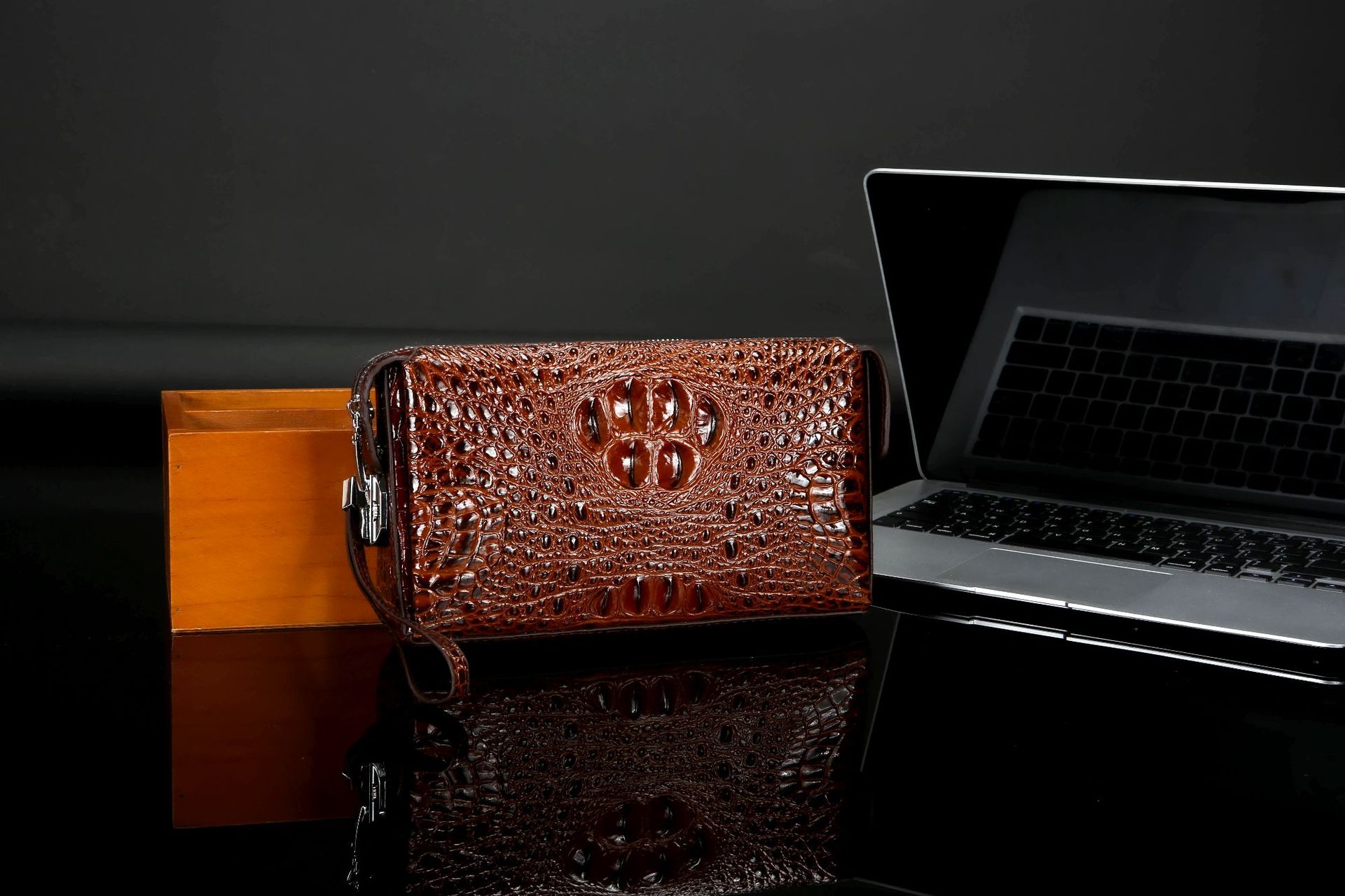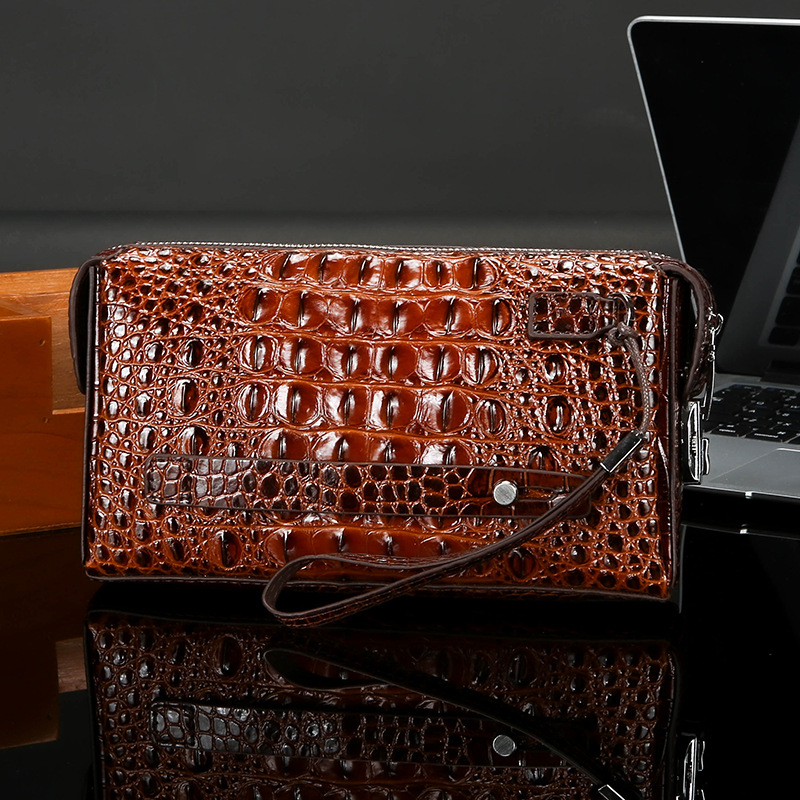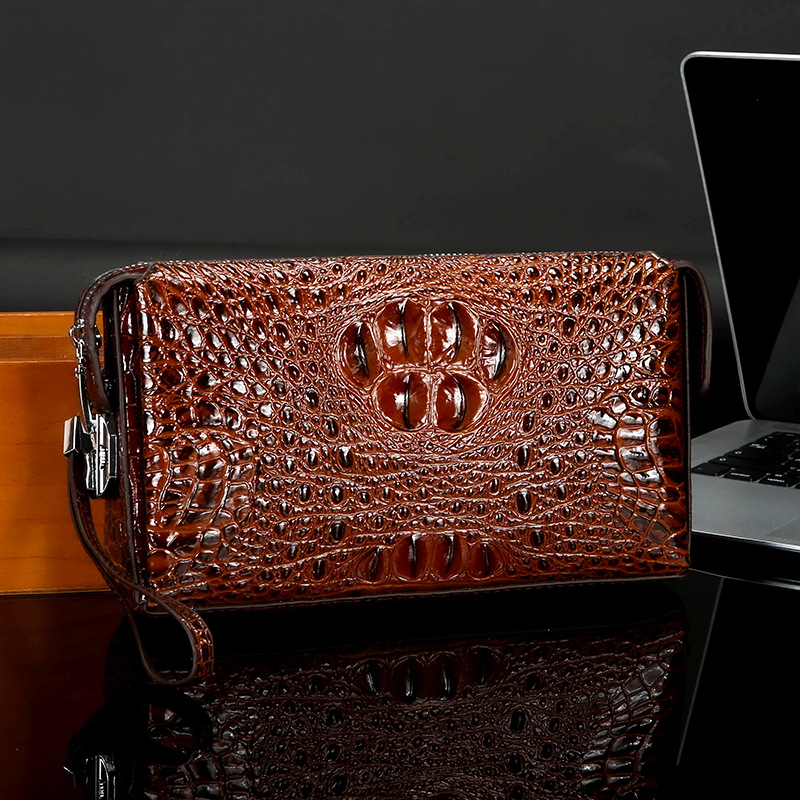 남성 비즈니스 클러치백 PU 크로스보더 신상 악어무늬 대용량 비즈니스 캐주얼 가방 천연 소가죽 클러치 남성용
