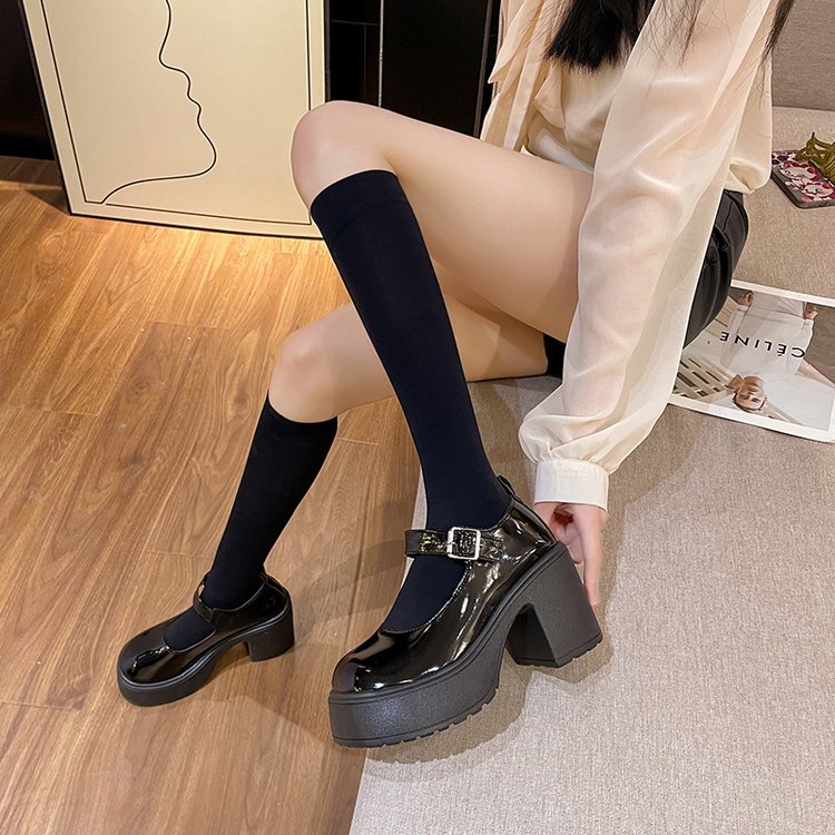 대형 사이즈 프렌치 스타일 두꺼운 굽 하이힐 여성용 2026 봄 신상 패션 두꺼운 밑창 플랫폼 원스트랩 메리제인 슈즈스토어 가기