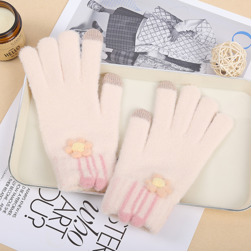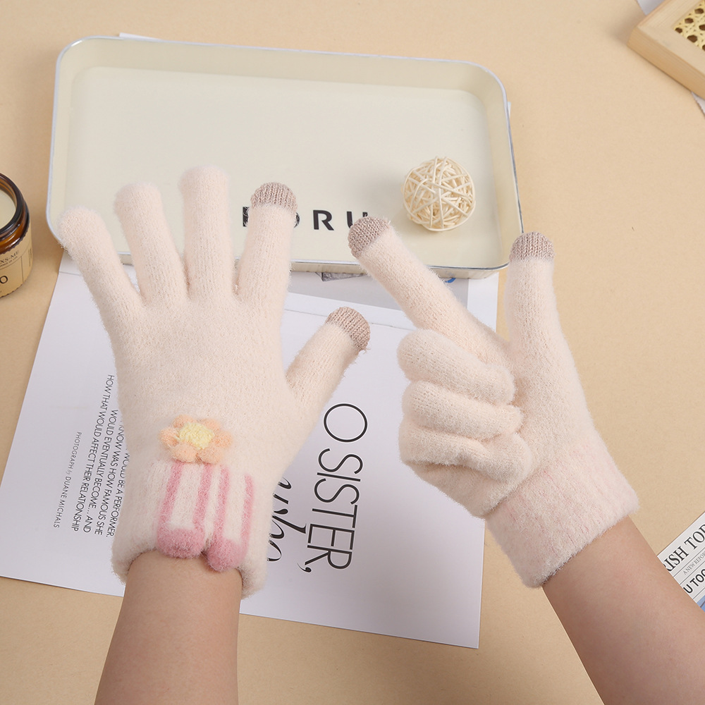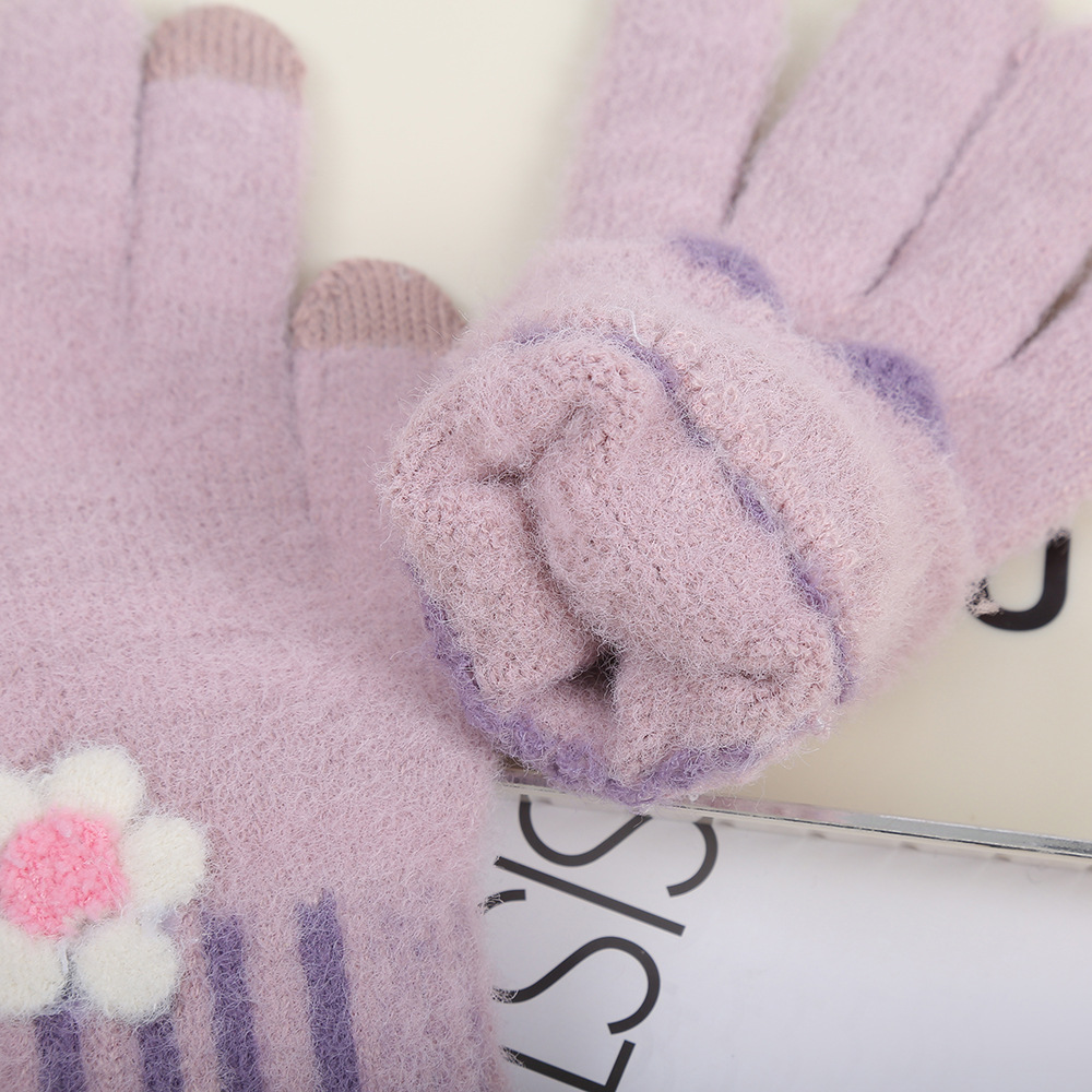 터치 스크린 플러시 토끼 귀 장갑 학생 파티 야외 방한 니트 장갑 가을, 겨울 어린이 따뜻한 전체 손가락 장갑