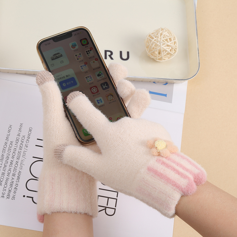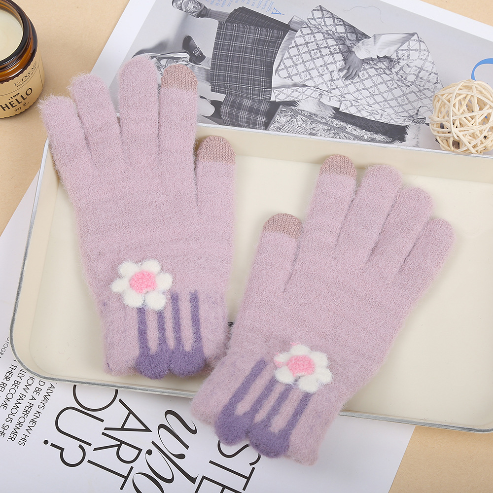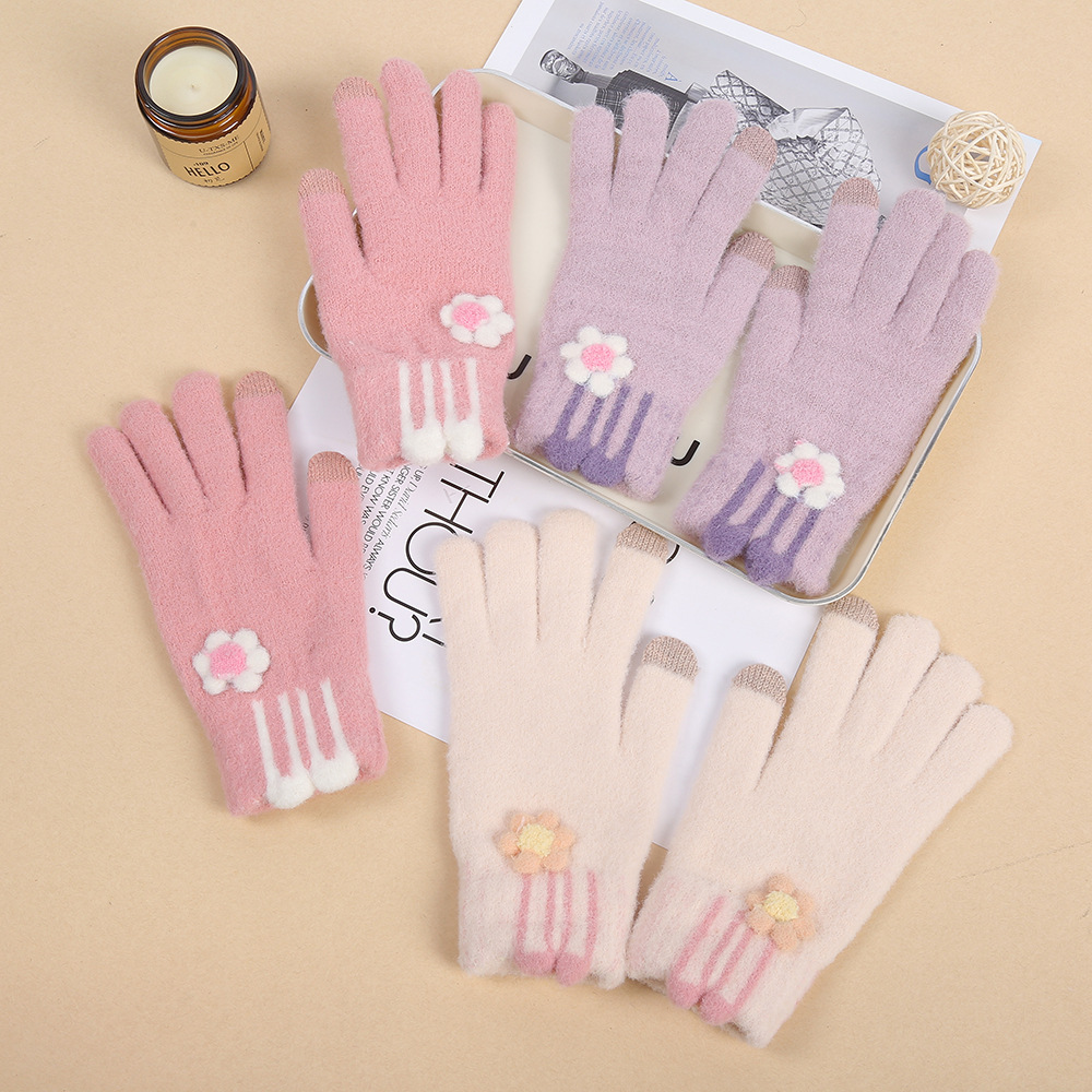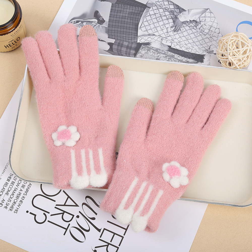 터치 스크린 플러시 토끼 귀 장갑 학생 파티 야외 방한 니트 장갑 가을, 겨울 어린이 따뜻한 전체 손가락 장갑