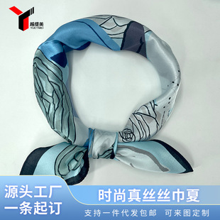 항주 실크 스카프 여성의 인쇄 다기능 노란색 스카프 가을과 겨울 따뜻한 스카프 쉬폰 작은 사각형 스카프 도매스토어 가기