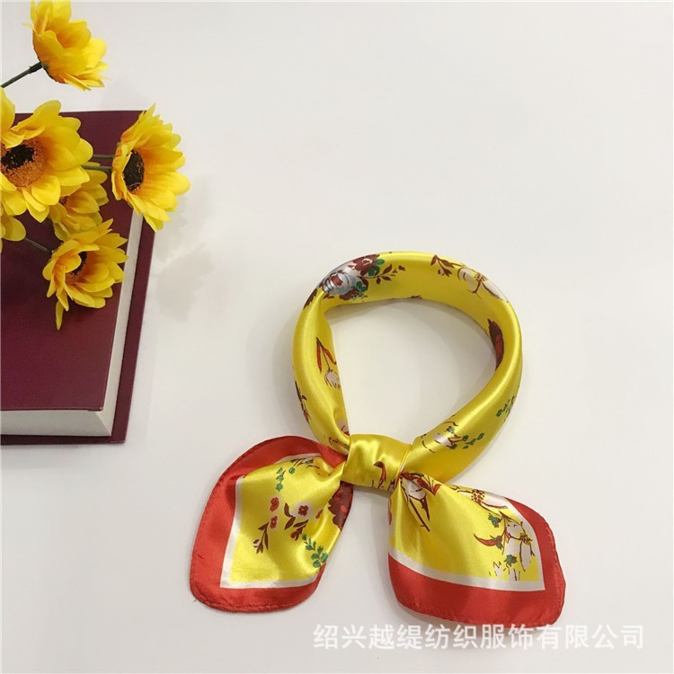 항주 실크 스카프 여성의 인쇄 다기능 노란색 스카프 가을과 겨울 따뜻한 스카프 쉬폰 작은 사각형 스카프 도매
