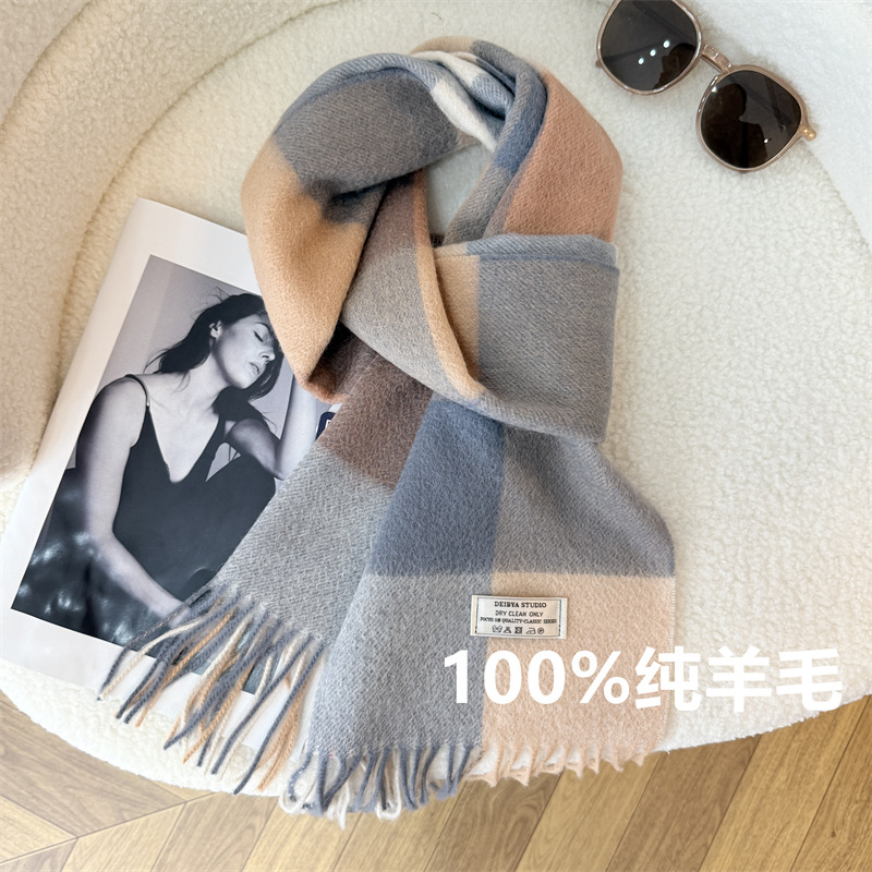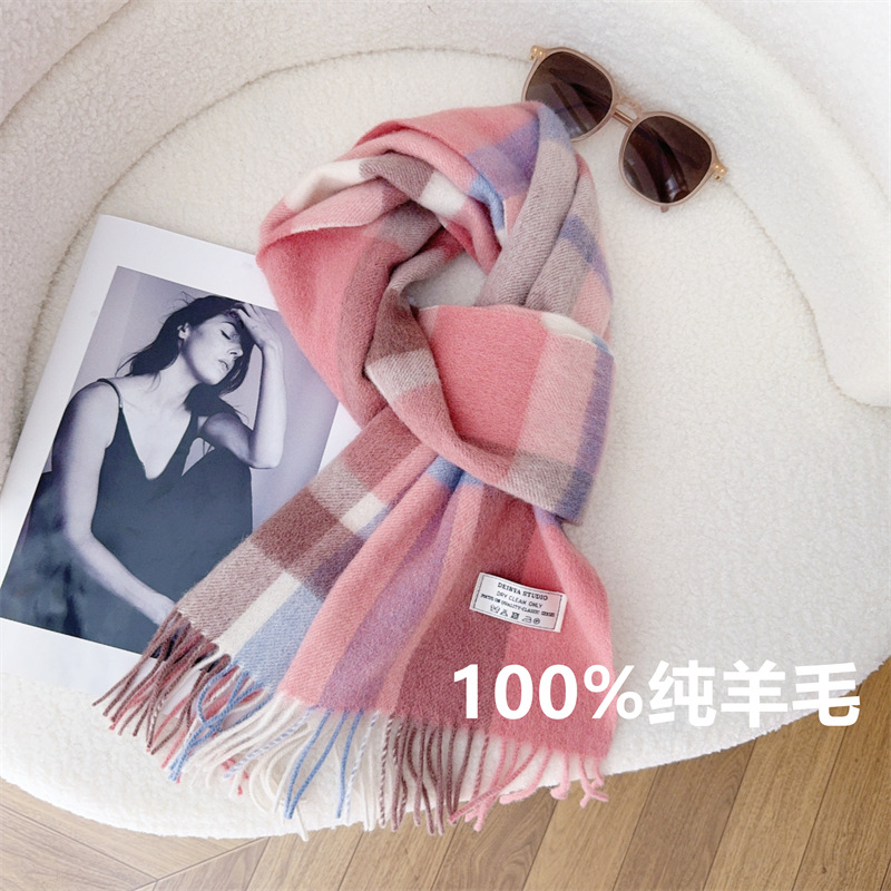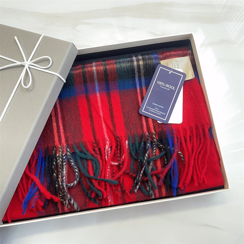 고급 영국산 100% 울 체크 스카프 여성 겨울 학생용 다용도 남성용 보온 커플 스카프 생일 선물