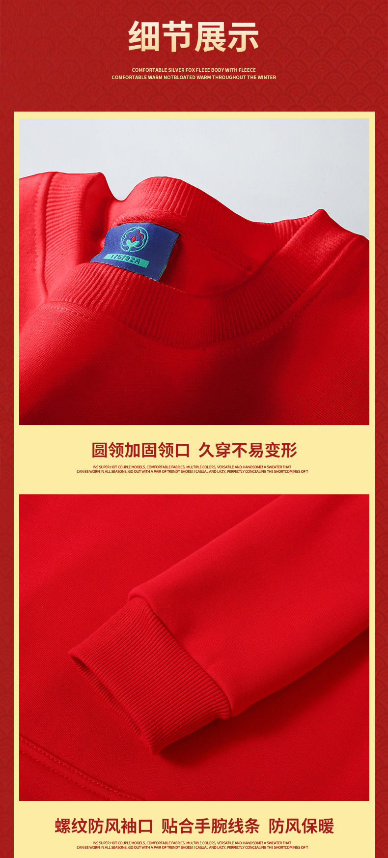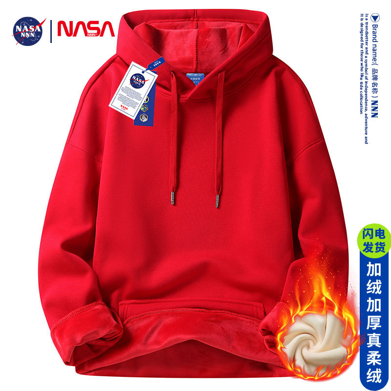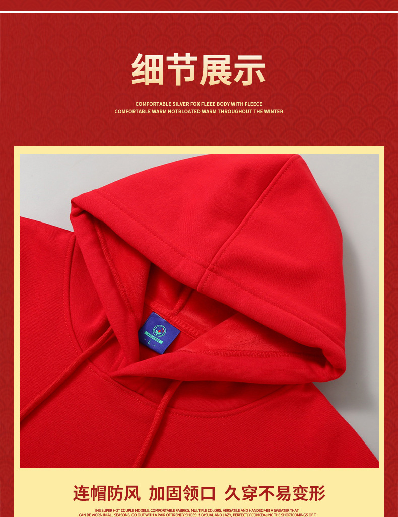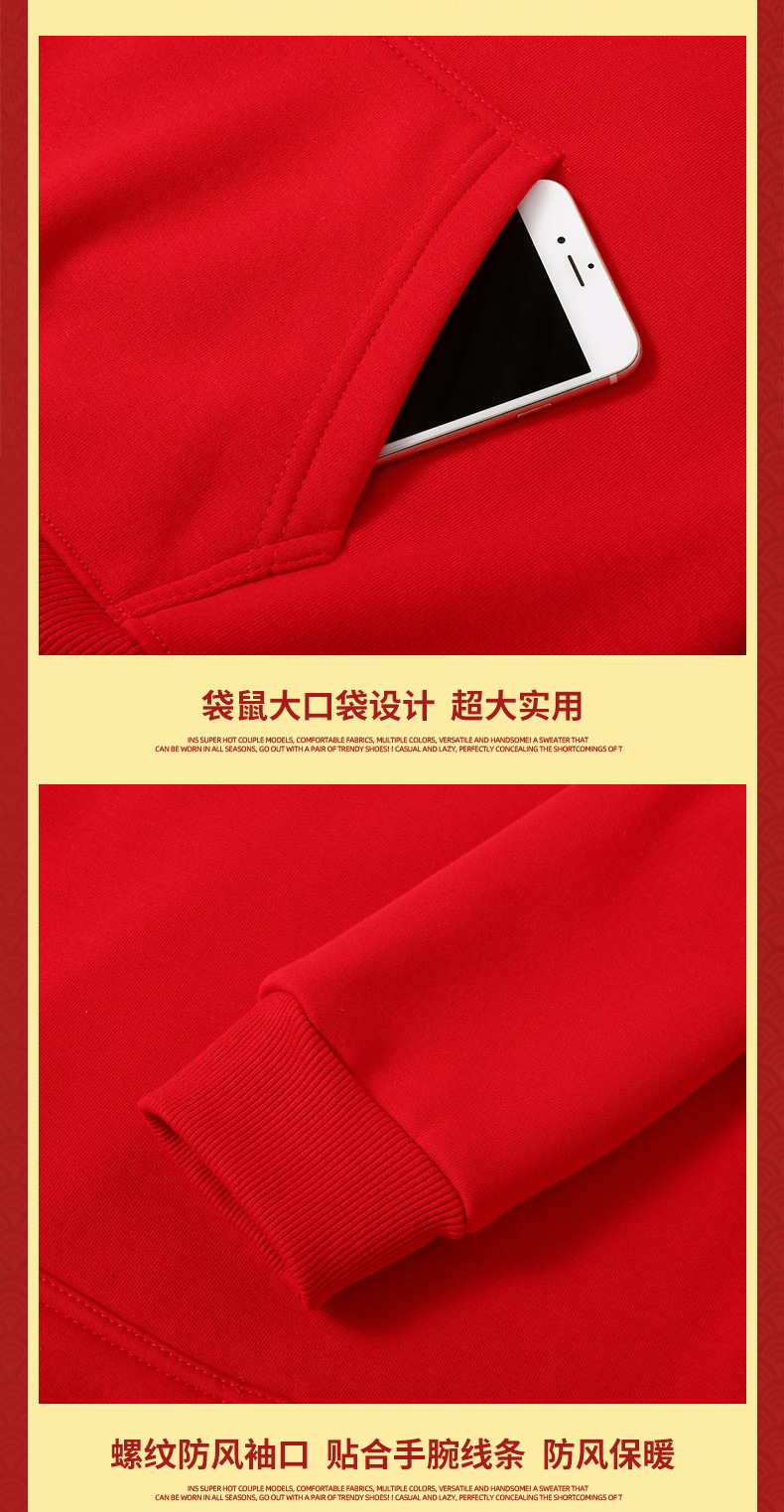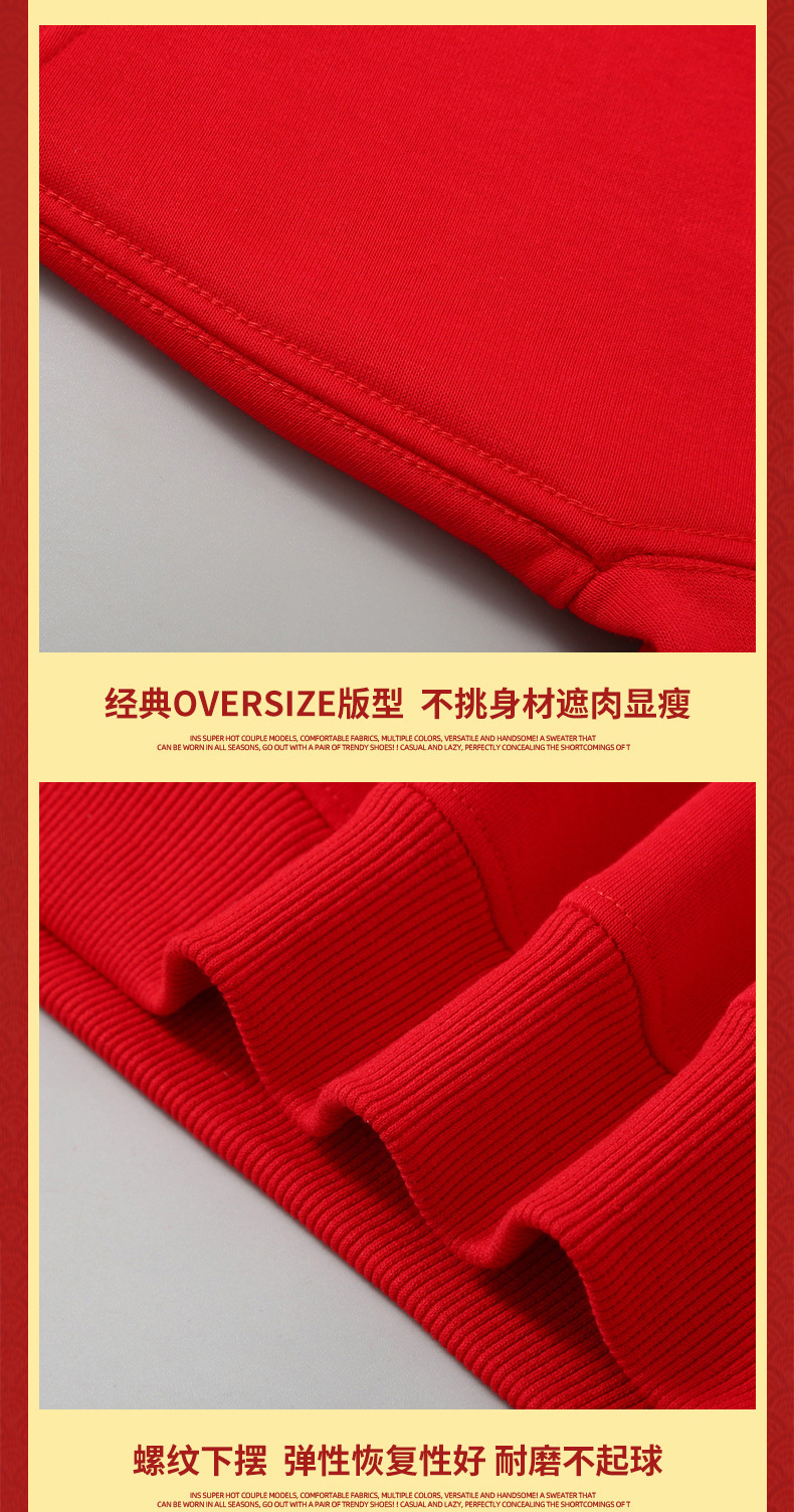 드래곤 년 레드 기모 스웨터 남성 후드 출생 년 둥근 목 봄과 가을 겨울 커플 학생 중국 용 단색스토어 가기