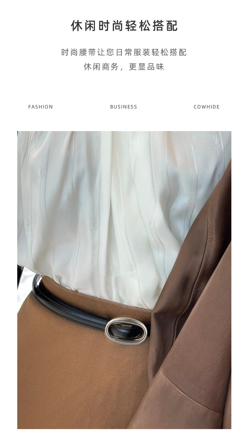 2025년 신상품 천연가죽 타원형 버클 벨트, 고급스러운 레트로 데님 팬츠 벨트, 여성용, 도매 판매 가능스토어 가기