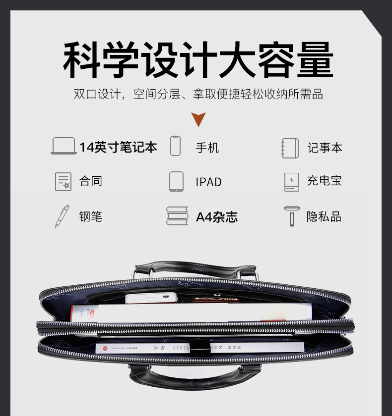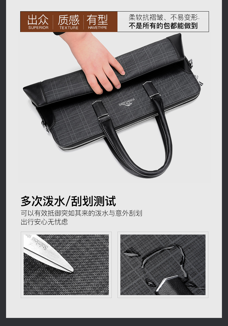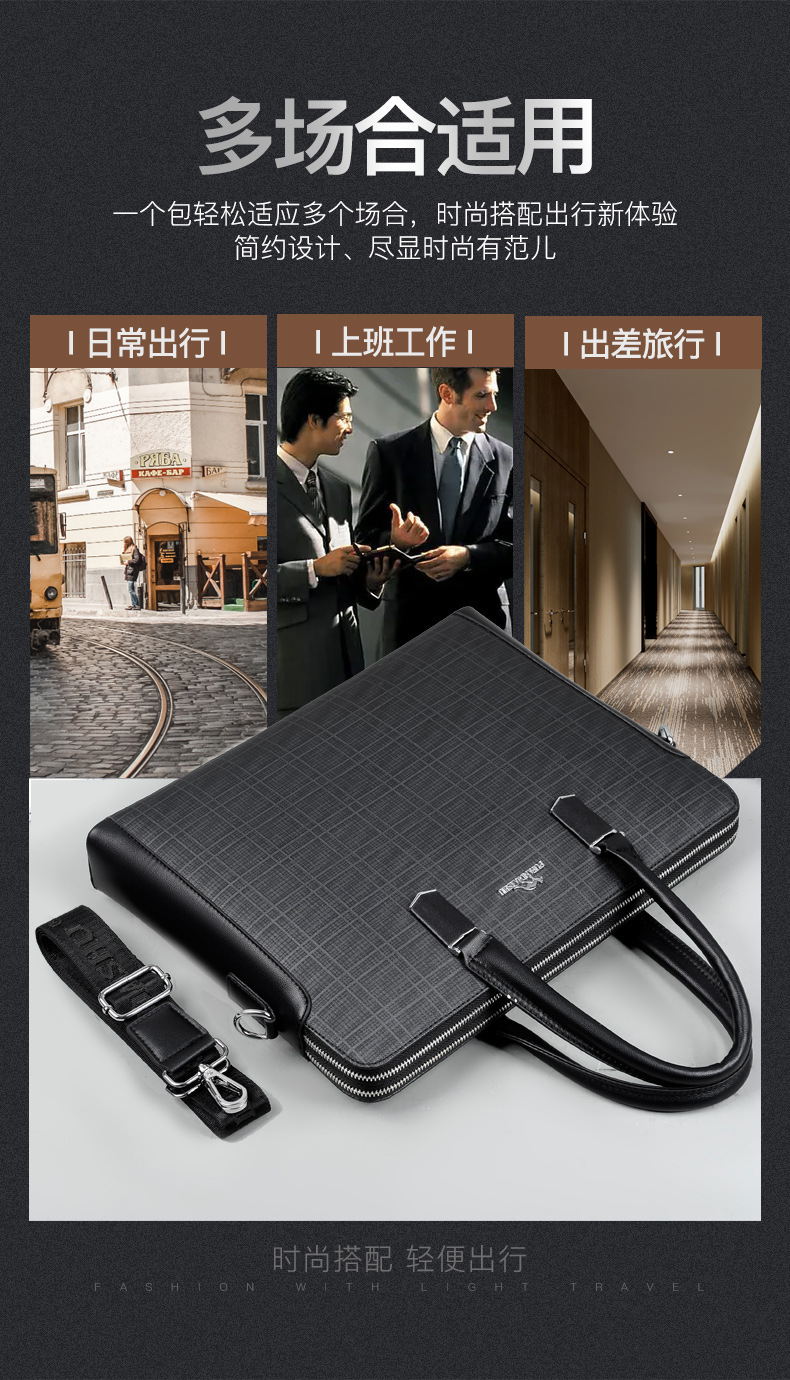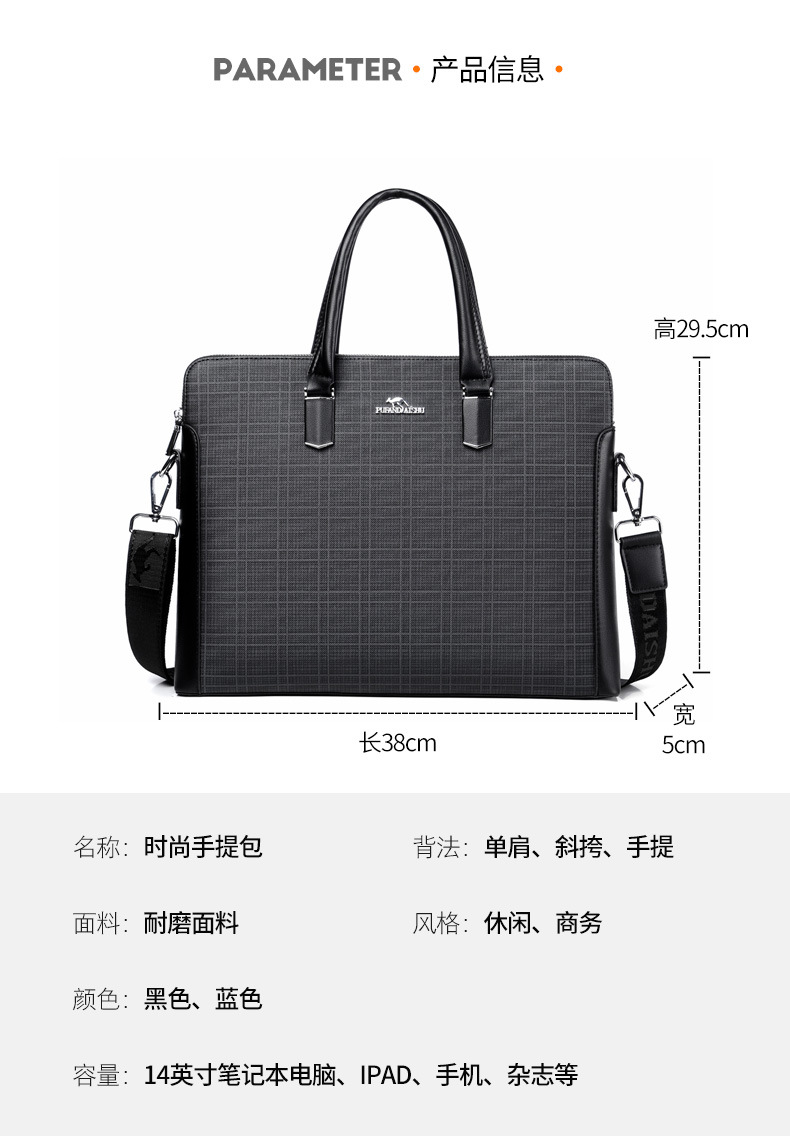 패셔너블한 남성 서류가방 가로형 비즈니스 출퇴근용 핸드백 남성용 크로스백 컴퓨터 가방 서류 선물 도매 해외배송