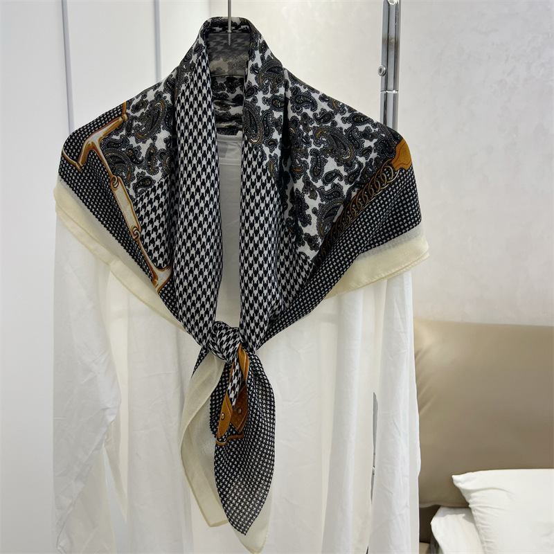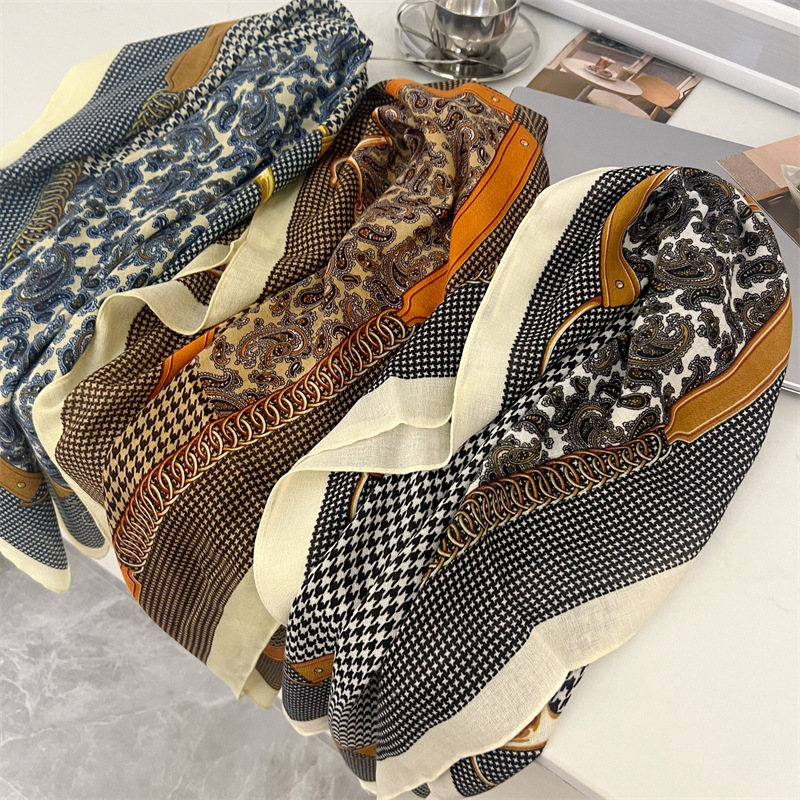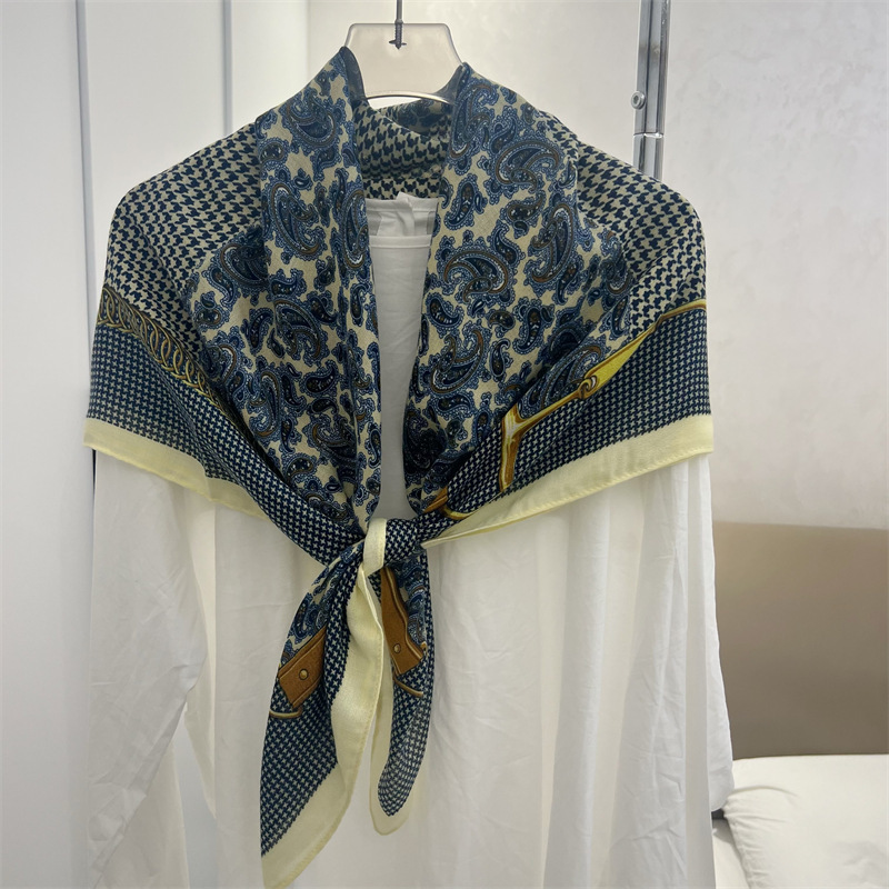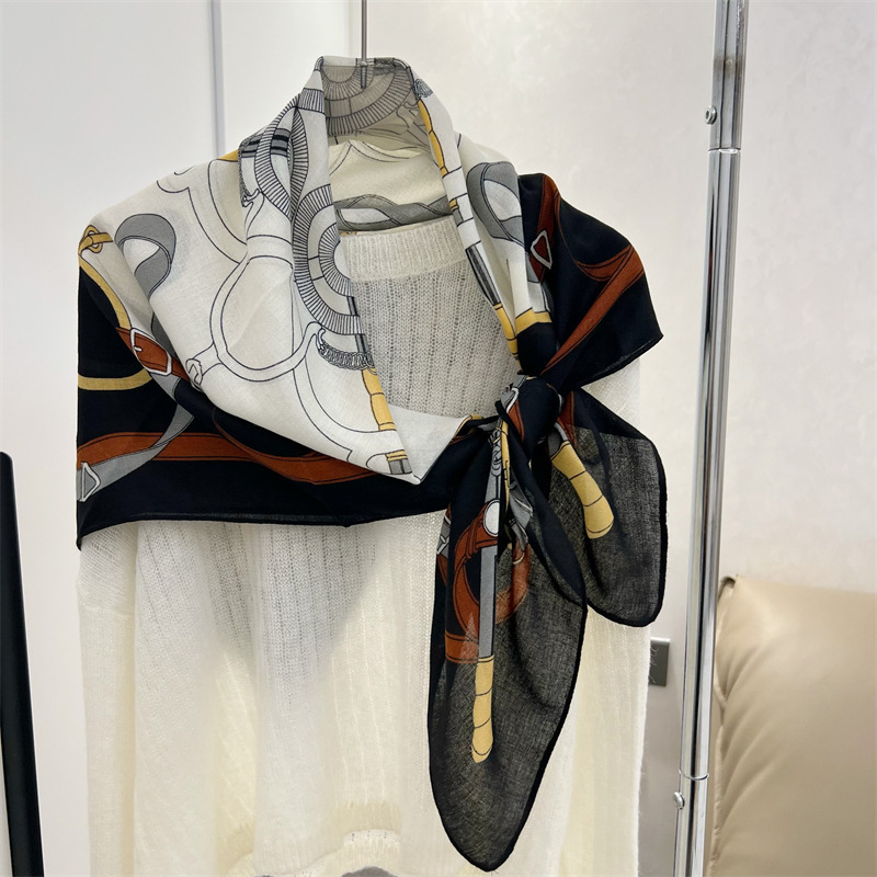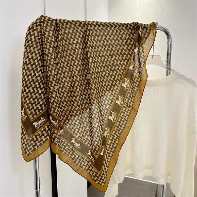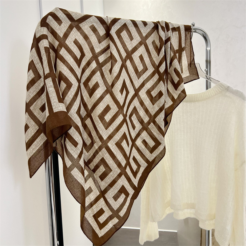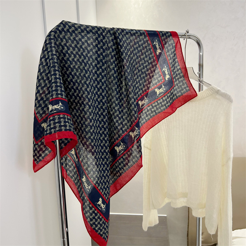 유럽과 미국의 가을과 겨울 새로운면과 린넨 느낌 90cm 스퀘어 스카프 여성 서양식 올 매치 숄리 올 매치 여행 스카프 비치 타월